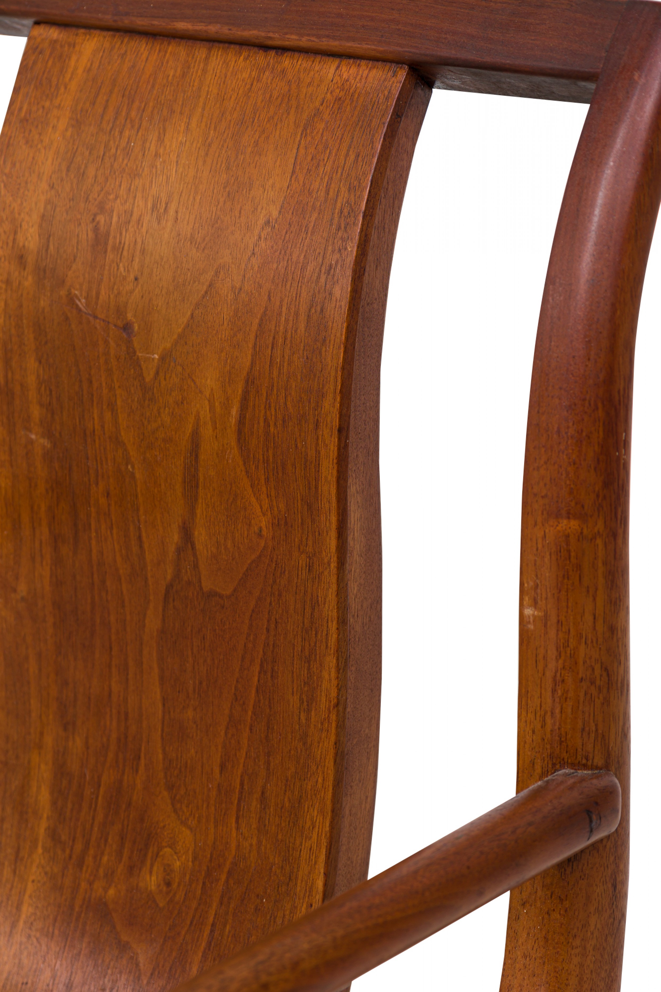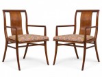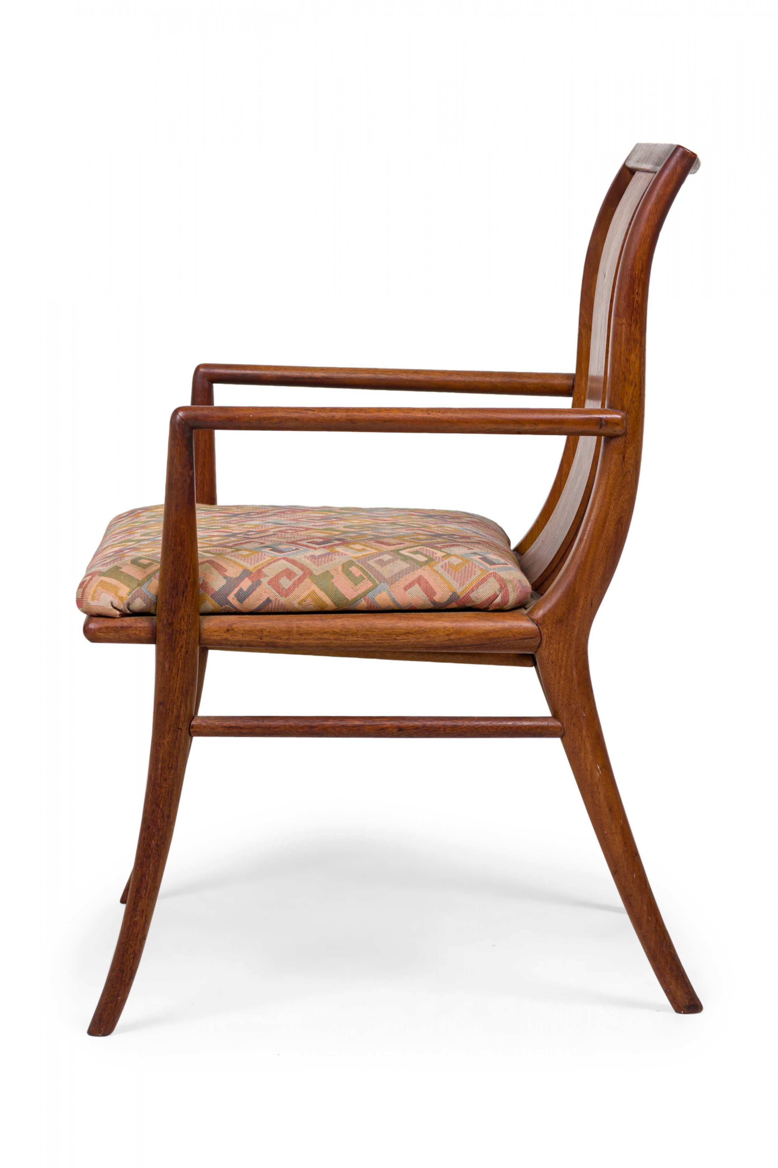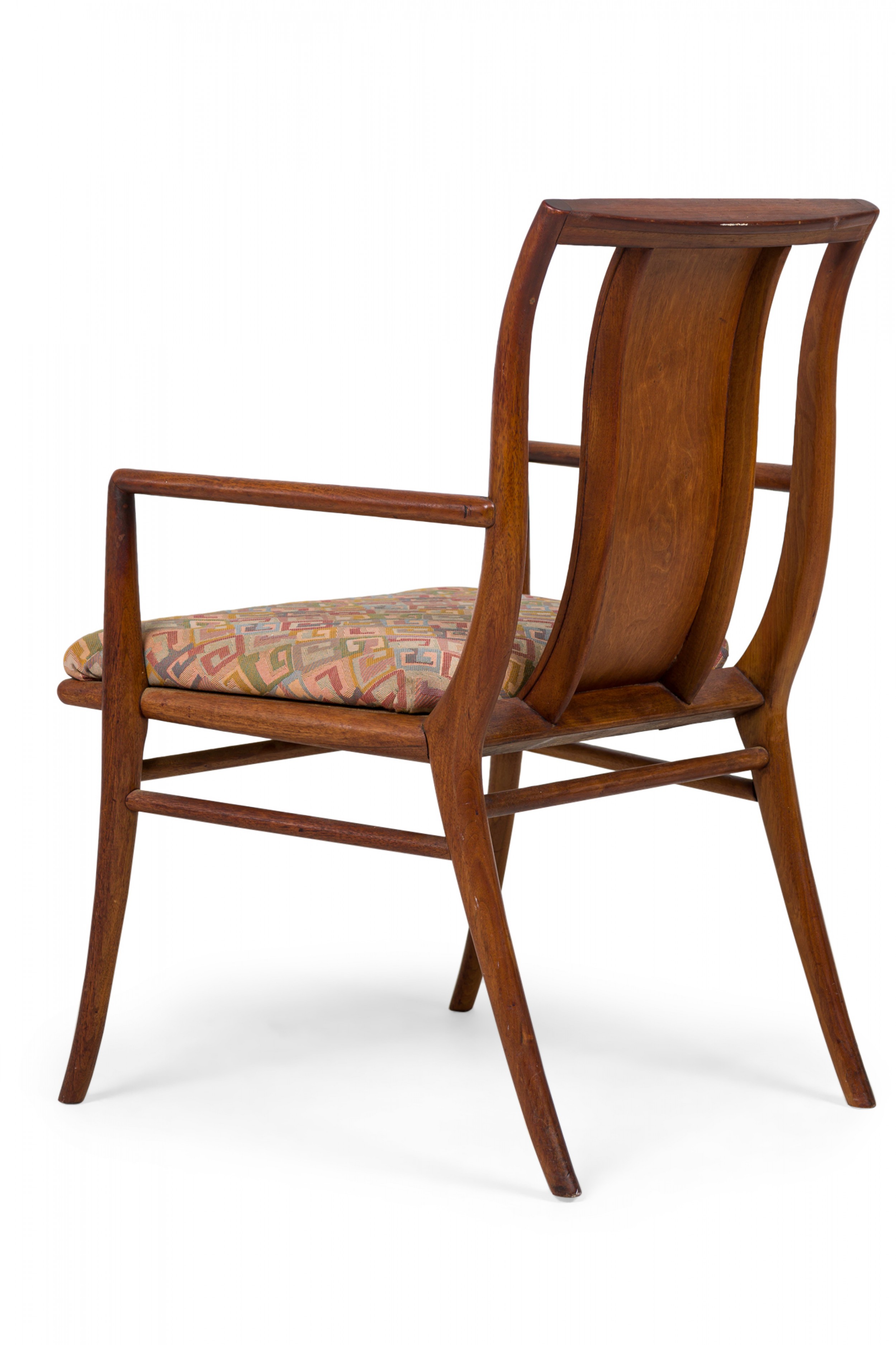 PAIR of Mid-Century American walnut armchairs with a square back having wavy splat panel back and upholstered seat (TH Robsjohn Gibbings) (PRICED AS PAIR)