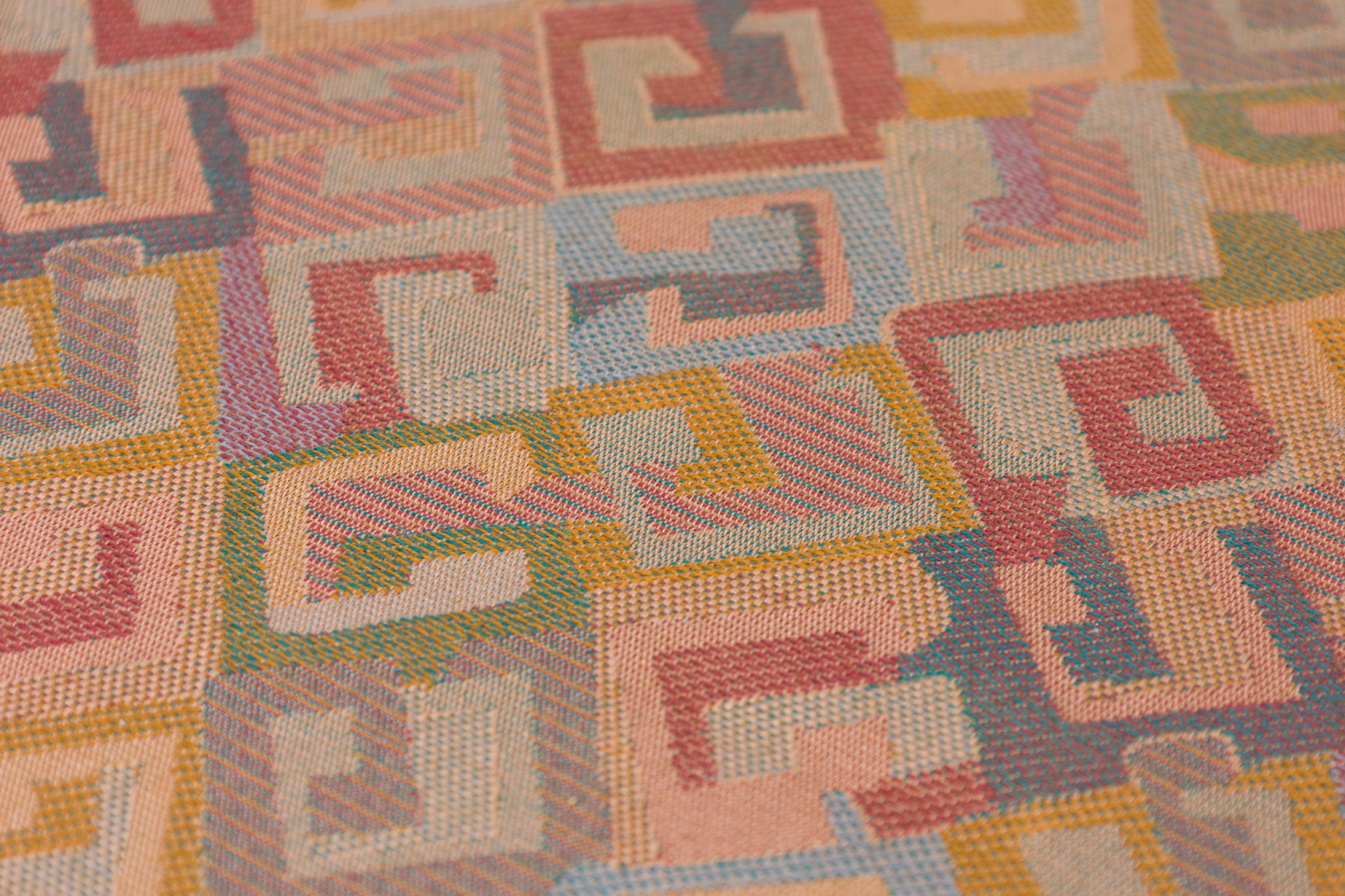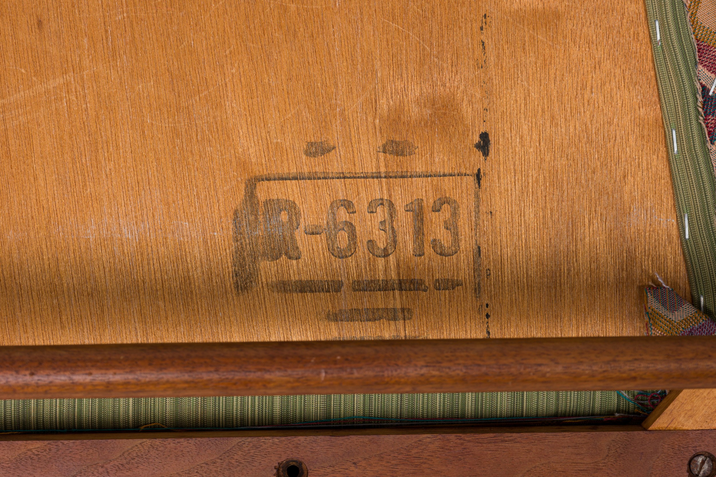 Style: Mid-Century Materials & Techniques: Fabric, upholstered, wood Category: Seating Good; Wear consistent with age and use