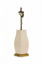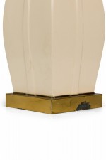 Pair of Mid-Century American White Lacquer Bombe Form Table Lamps on Brass Bases