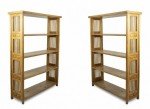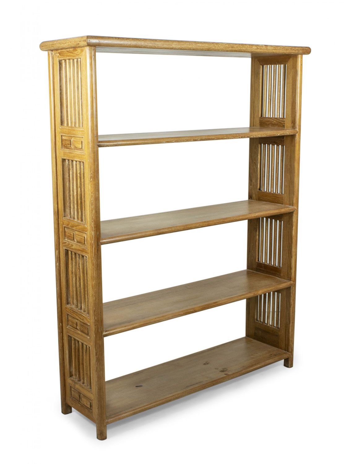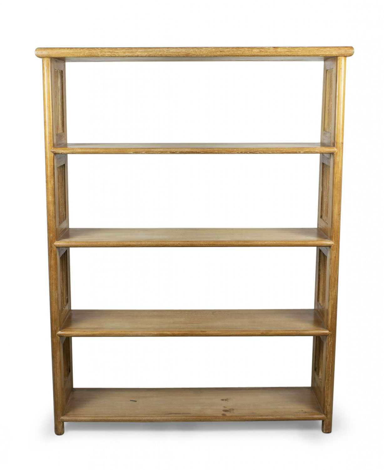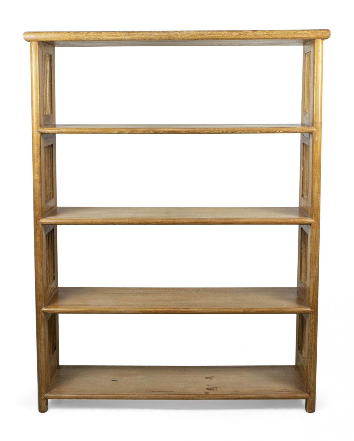 PAIR of Mid-Century (1940s) Austrian style open bookcases / etageres in cerused oak with 4 shelves, carved and beveled sides and dowel connecting joint construction (PRICED AS PAIR).