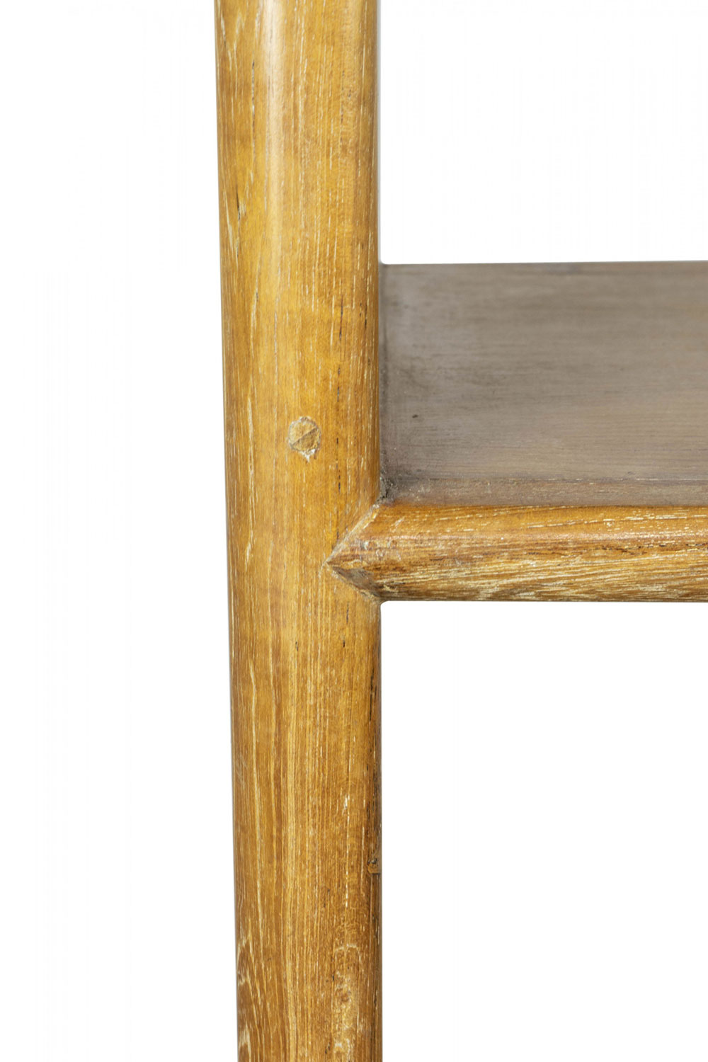 PAIR of Mid-Century (1940s) Austrian style open bookcases / etageres in cerused oak with 4 shelves, carved and beveled sides and dowel connecting joint construction (PRICED AS PAIR)