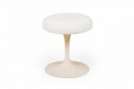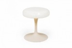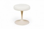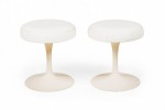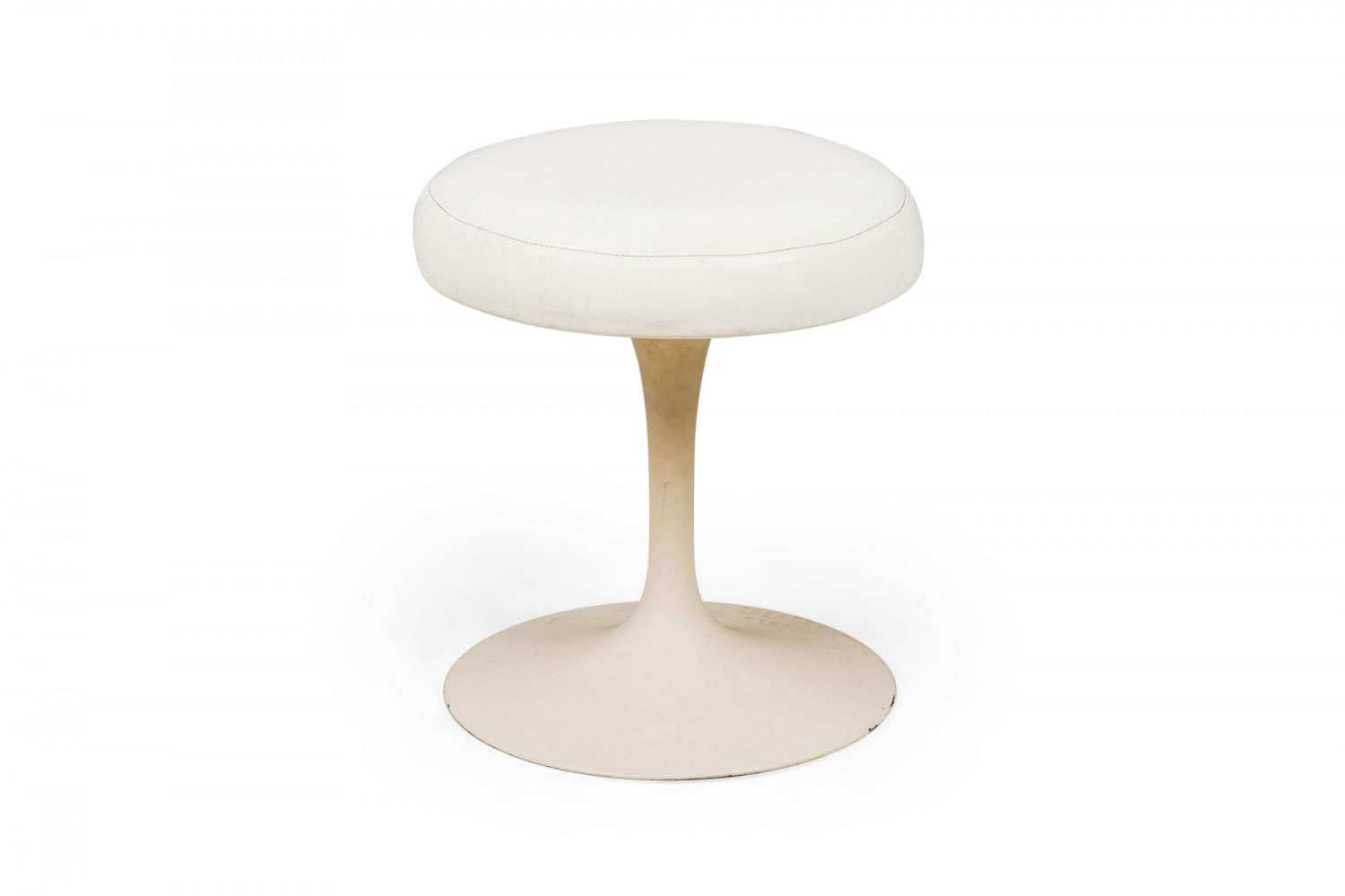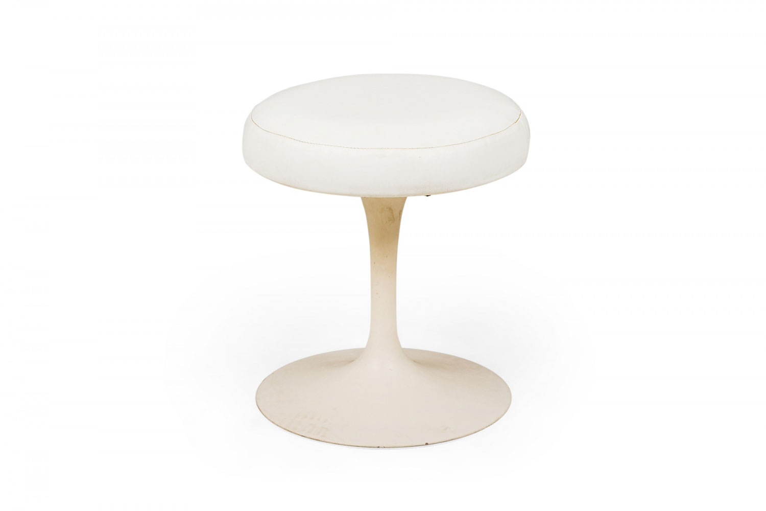 PAIR of Mid-Century Finnish "Tulip" stools from the American Pedestal Collection (Late 1950s) upholstered in white leather, standing on white enameled metal bases. (EERO SAARINEN FOR KNOLL INTERNATIONAL) (PRICED AS PAIR).
