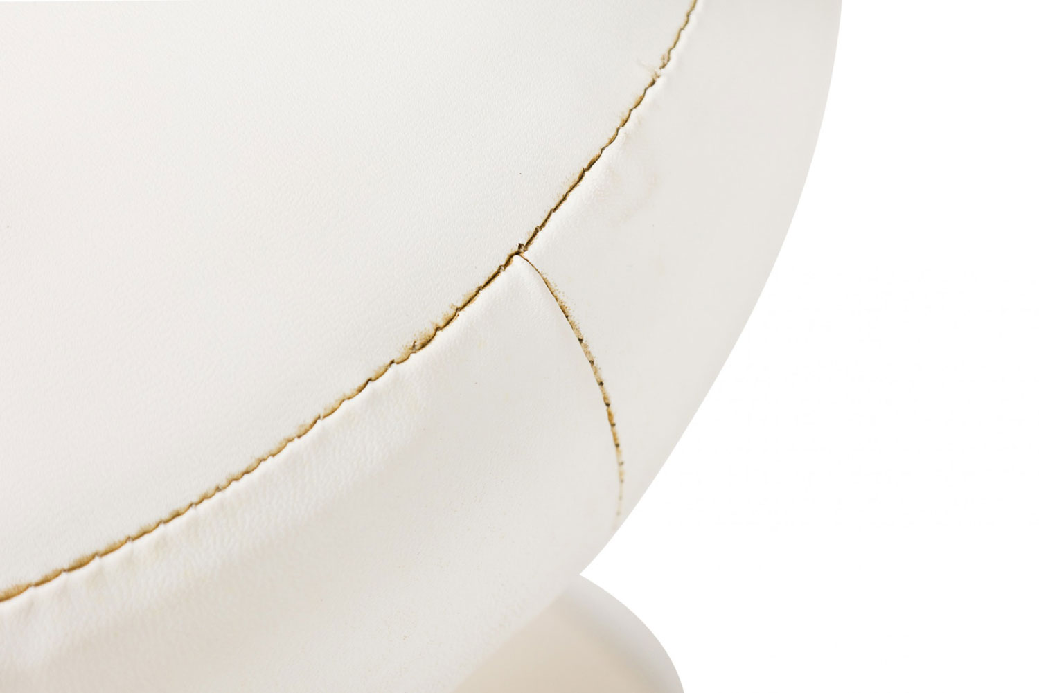 PAIR of Mid-Century Finnish "Tulip" stools from the American Pedestal Collection (Late 1950s) upholstered in white leather, standing on white enameled metal bases. (EERO SAARINEN FOR KNOLL INTERNATIONAL) (PRICED AS PAIR)