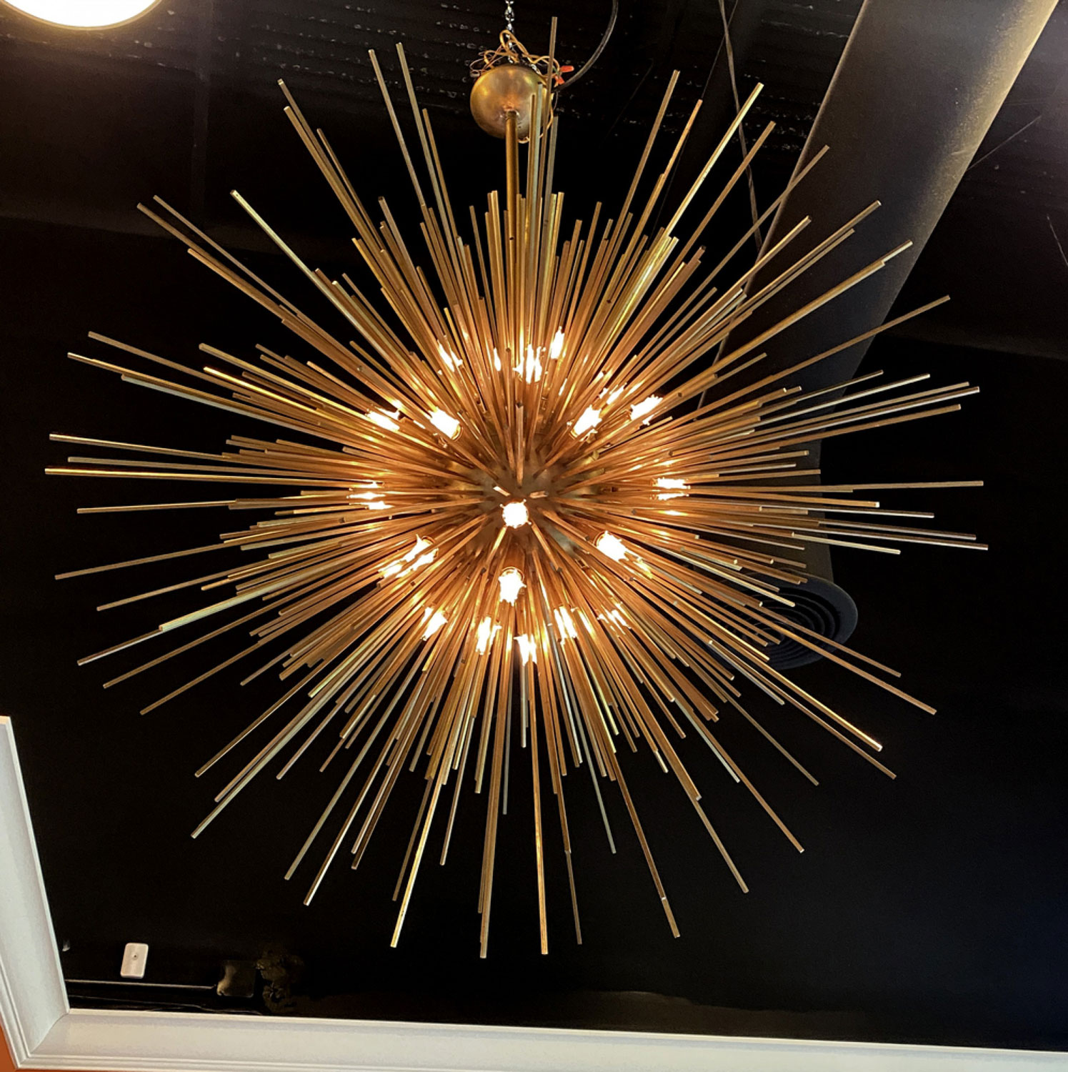 PAIR of Mid-Century Italian Modern monumental Sputnik chandeliers in brass. (PRICED AS PAIR).