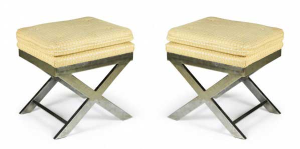 Style: Mid-Century Materials & Techniques: Brass, fabric, metal, upholstered, velour, wood Category: Seating Good; Wear consistent with age and use