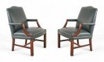 Pair of Mid-Century Style Blue Faux Leather and Wood Office Armchairs