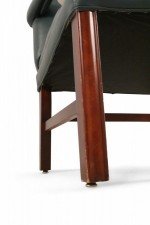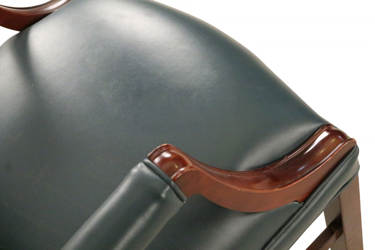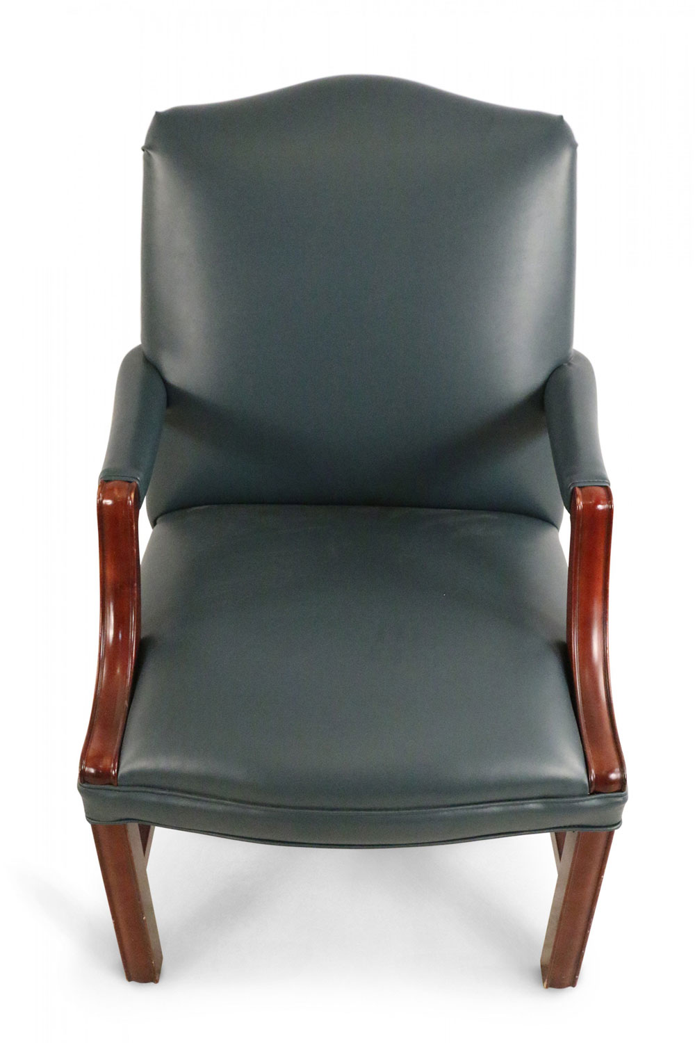 PAIR of Mid-Century style faux blue leather office/conference armchairs with wooden frames and brass upholstery nail detail. (PRICED AS PAIR) (Similar items: 062647-062649).