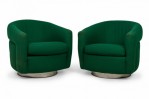 Pair of Milo Baughman American Mid-Century Emerald Green Upholstered Swivel / Tilt Tub Armchairs
