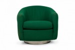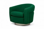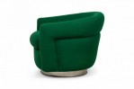 PAIR of American Mid-Century tub form swiveling lounge / armchairs upholstered in emerald green fabric and resting on circular chrome swivel bases. (MILO BAUGHMAN)(PRICED AS PAIR).