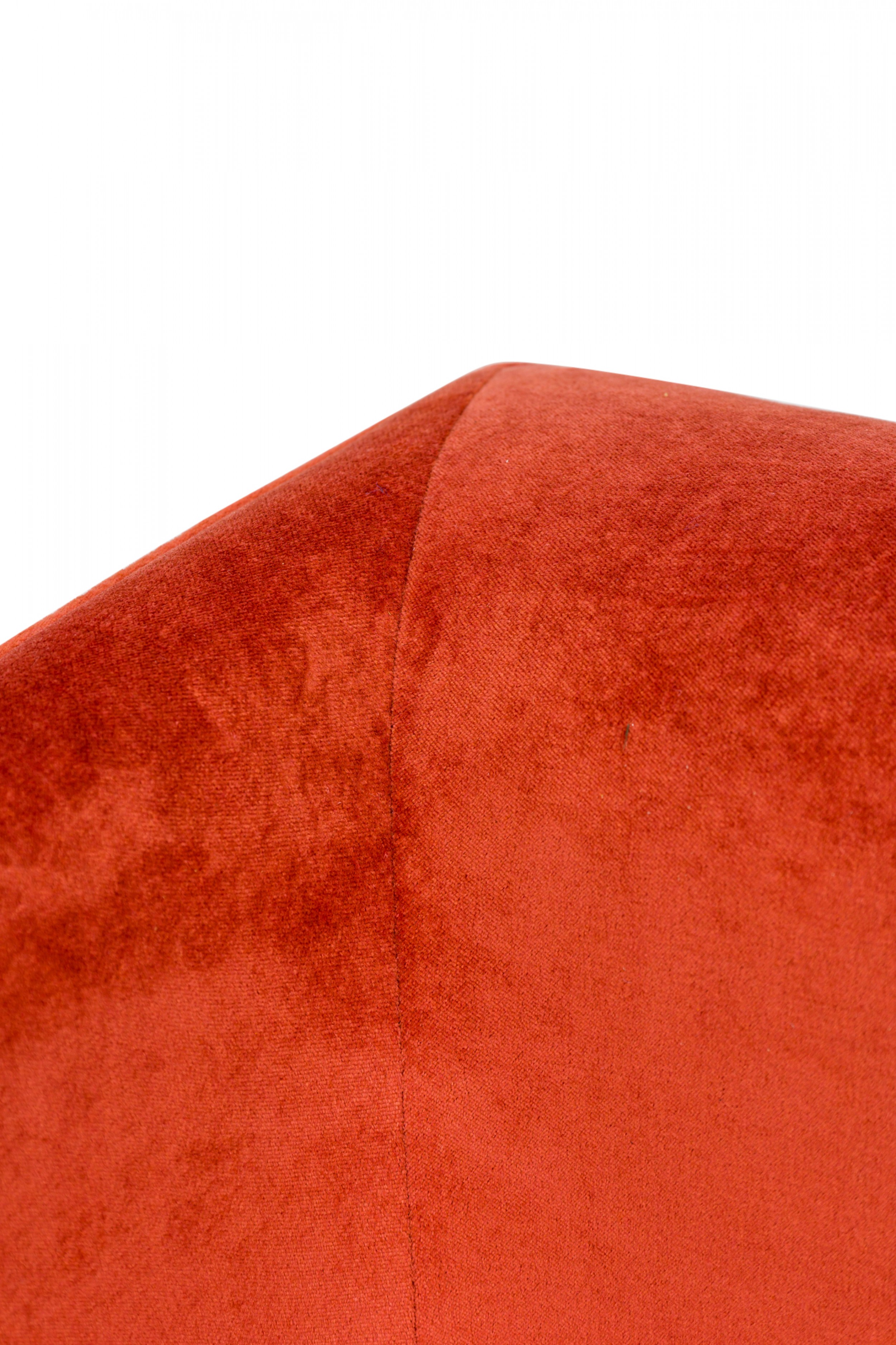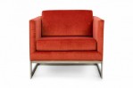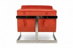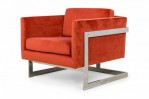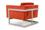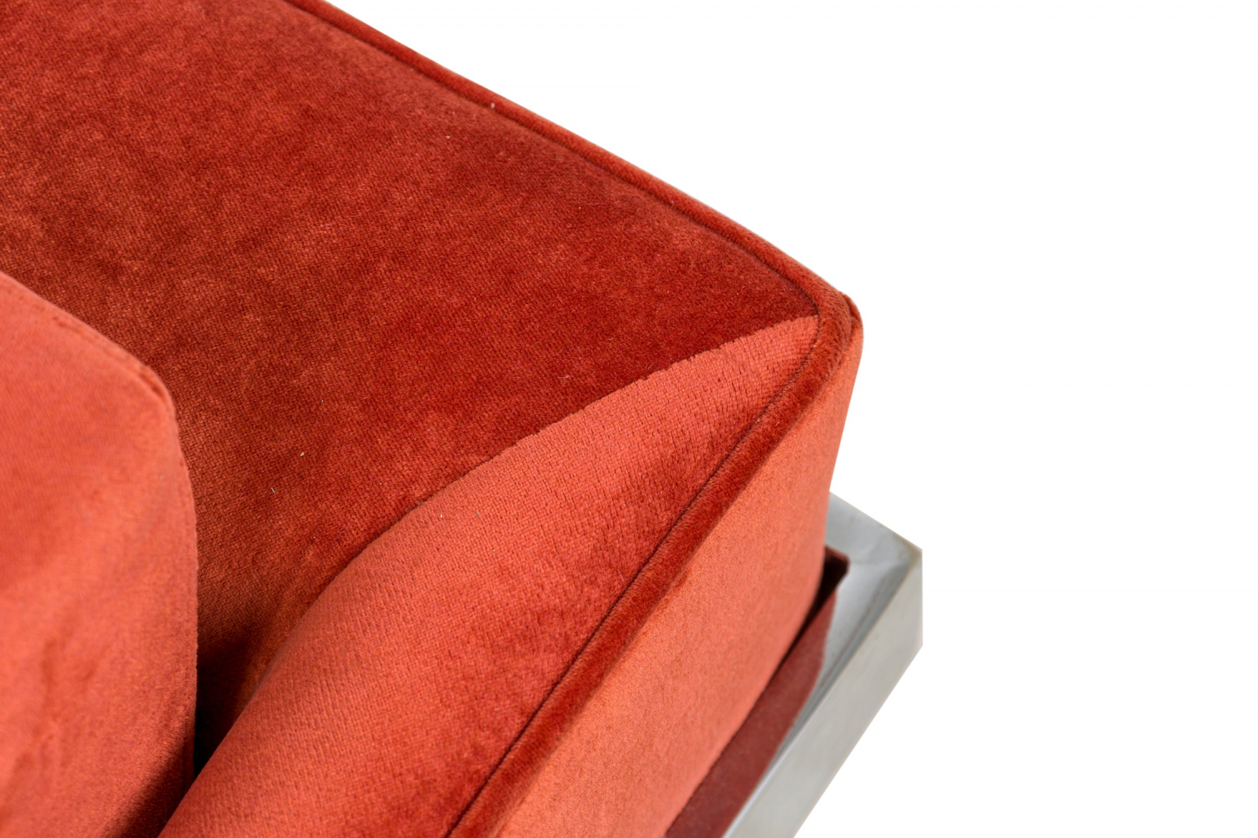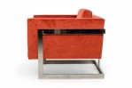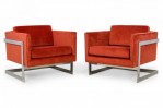 PAIR of American Mid-Century floating cube lounge /armchairs with polished chrome frames and orange velvet upholstery. (MILO BAUGHMAN FOR THAYER COGGIN)(PRICED AS PAIR)
