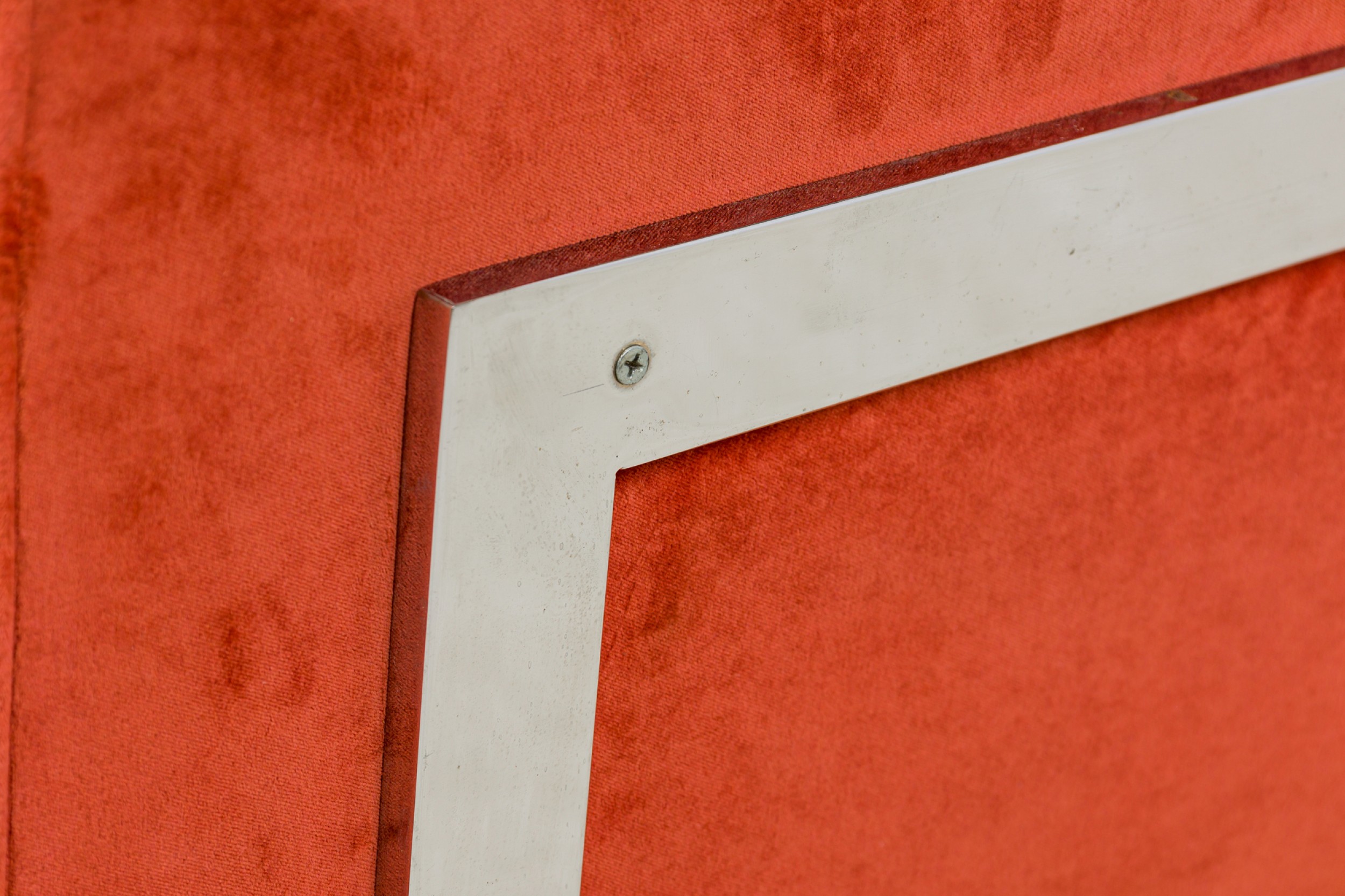 Style: Mid-Century Materials & Techniques: Chrome, metal, upholstered, velvet Category: Seating Good; Wear consistent with age and use