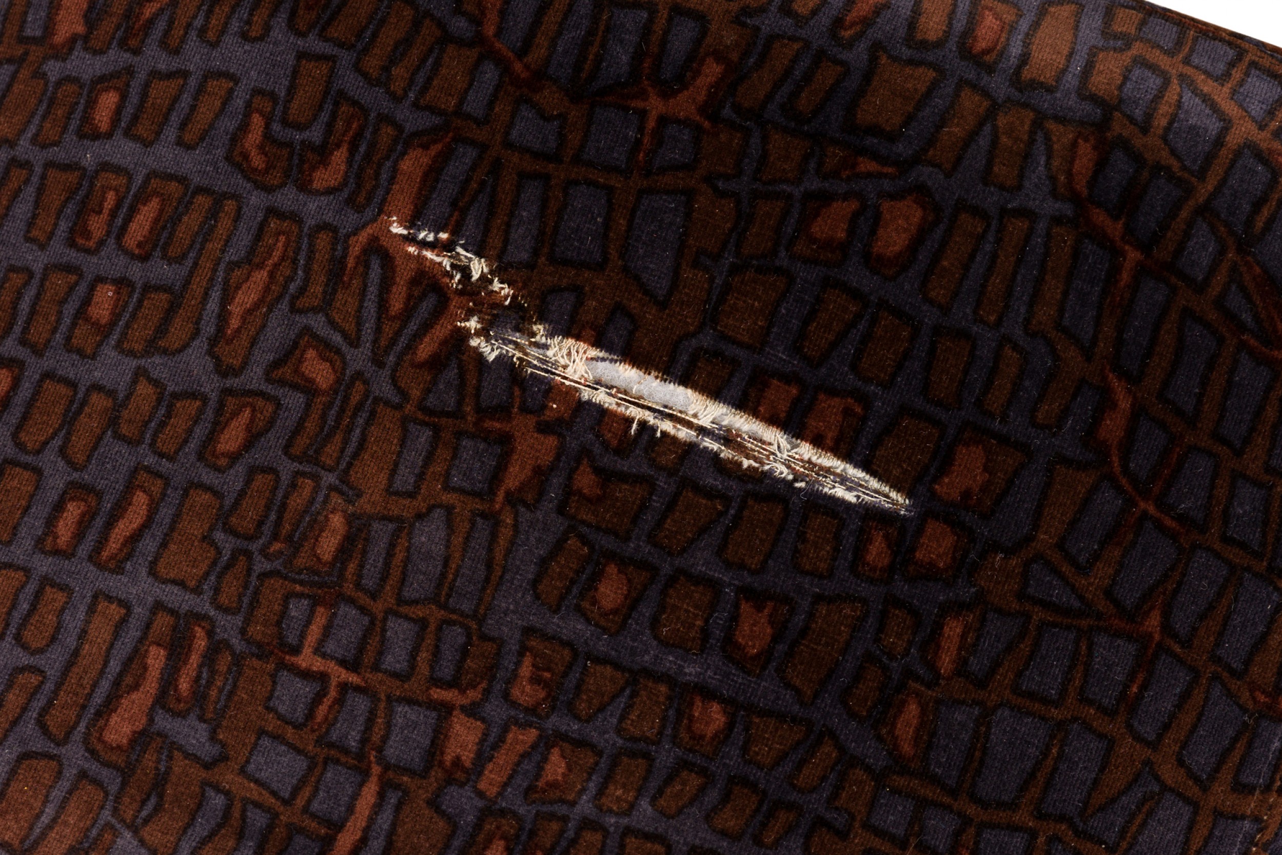 Style: Mid-Century Materials & Techniques: Upholstered, velvet Category: Seating Good; Wear consistent with age and use
