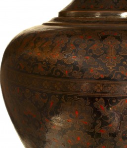 PAIR of large Middle Eastern Persian style (19th Cent) black & red cloisonné and enamel floral design floor vases. (PRICED AS PAIR).