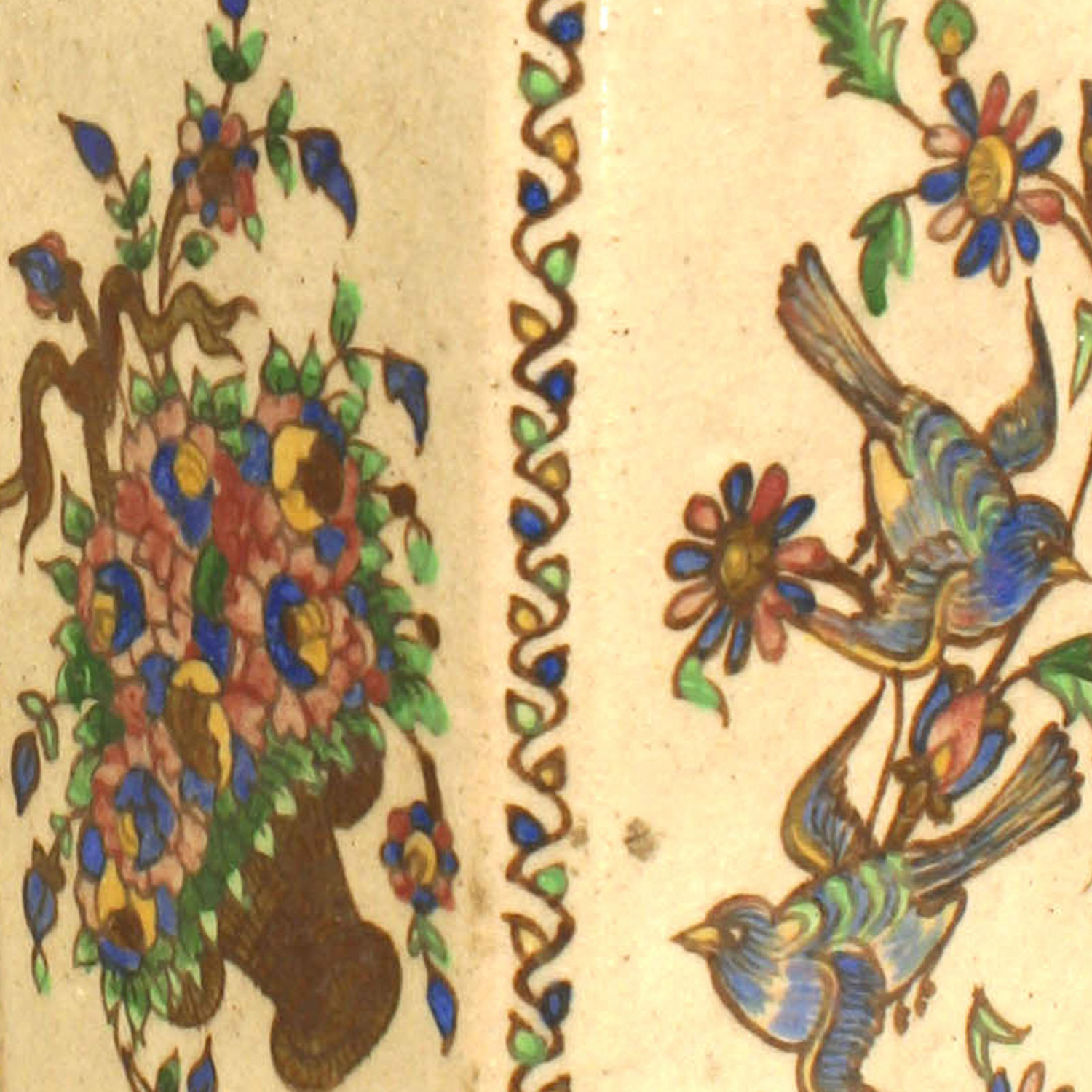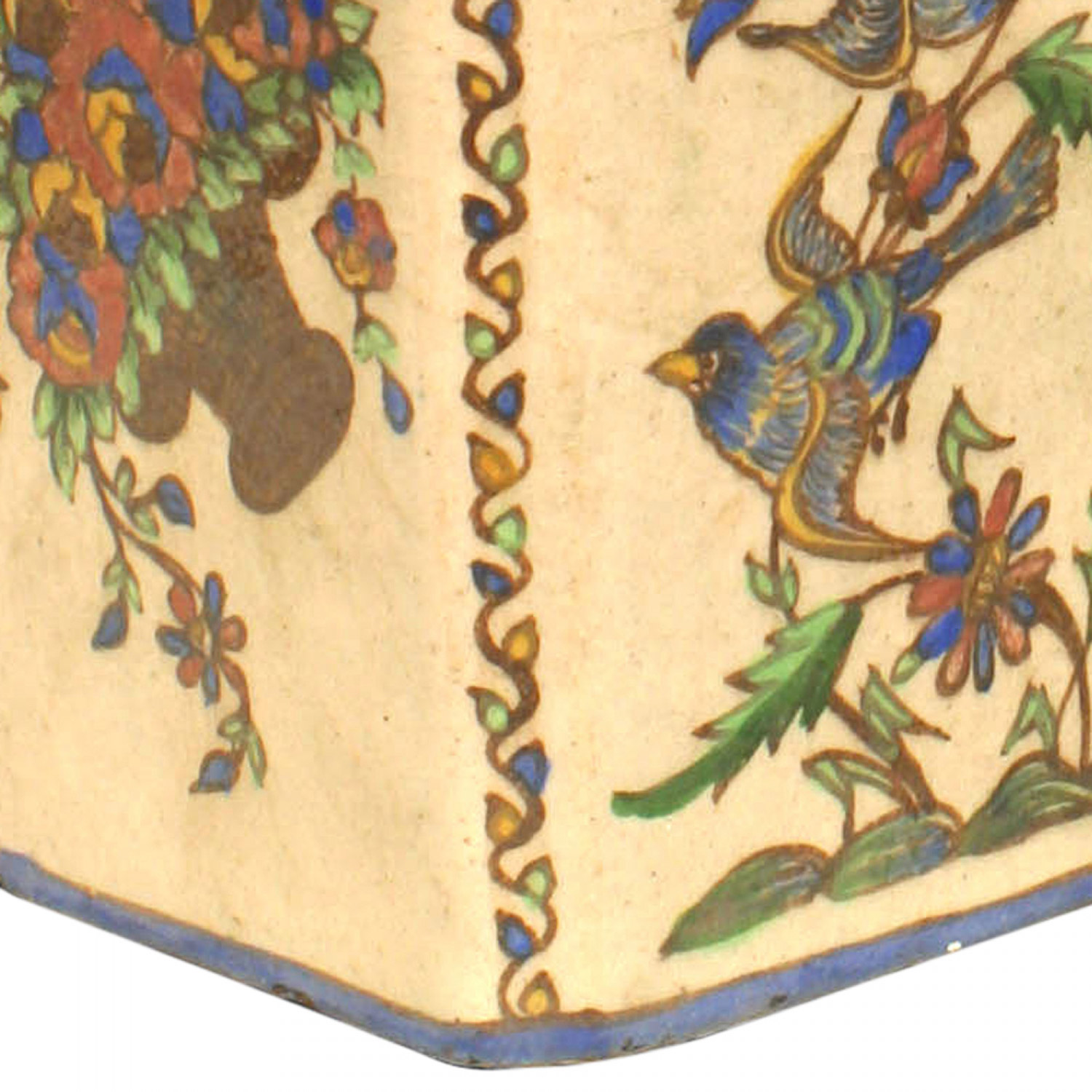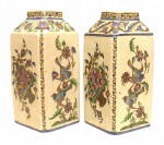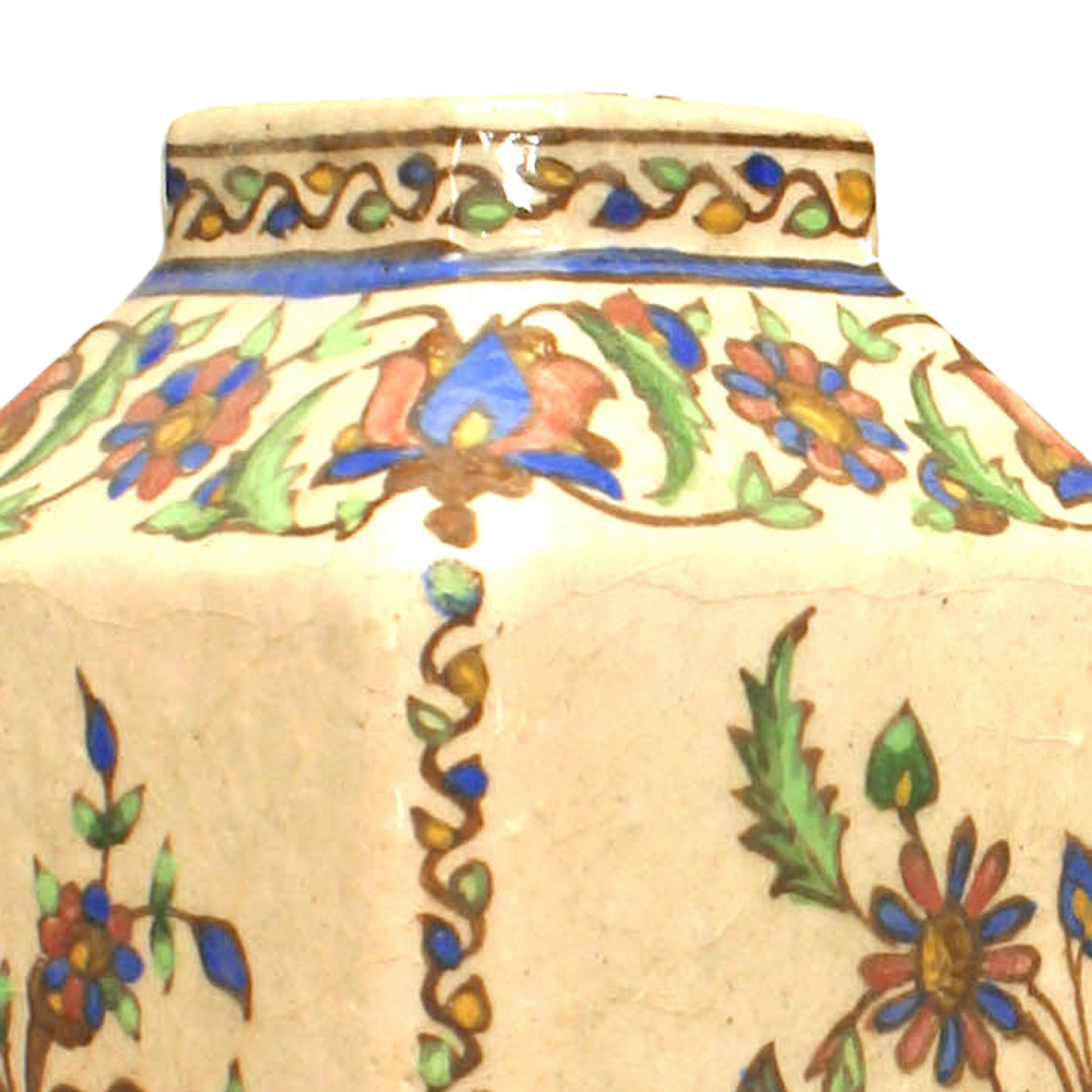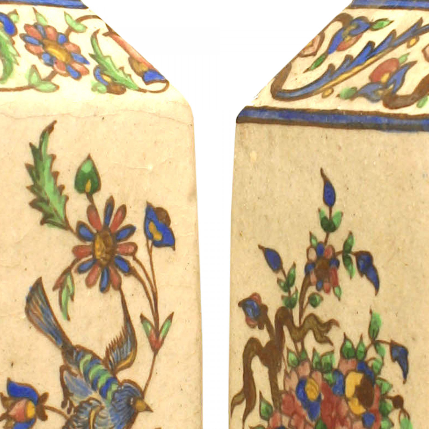 PAIR of Middle Eastern Persian style (19/20th Cent) glazed earthenware square vases with Persian floral decoration. (PRICED AS PAIR)