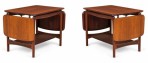 PAIR of Danish Mid-Century rectangular teak end/side tables with two drop leaves, supported by a four legged frame with a bottom stretcher shelf. (PETER HVIDT)(Similar tables: DUF0381, DUF0383).
