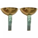 Pair of Pietro Chiesa Fontana Arte Mid-Century Italian Modern Brass & Glass Wall Lights / Sconces