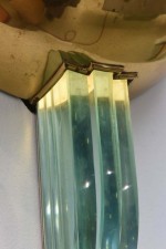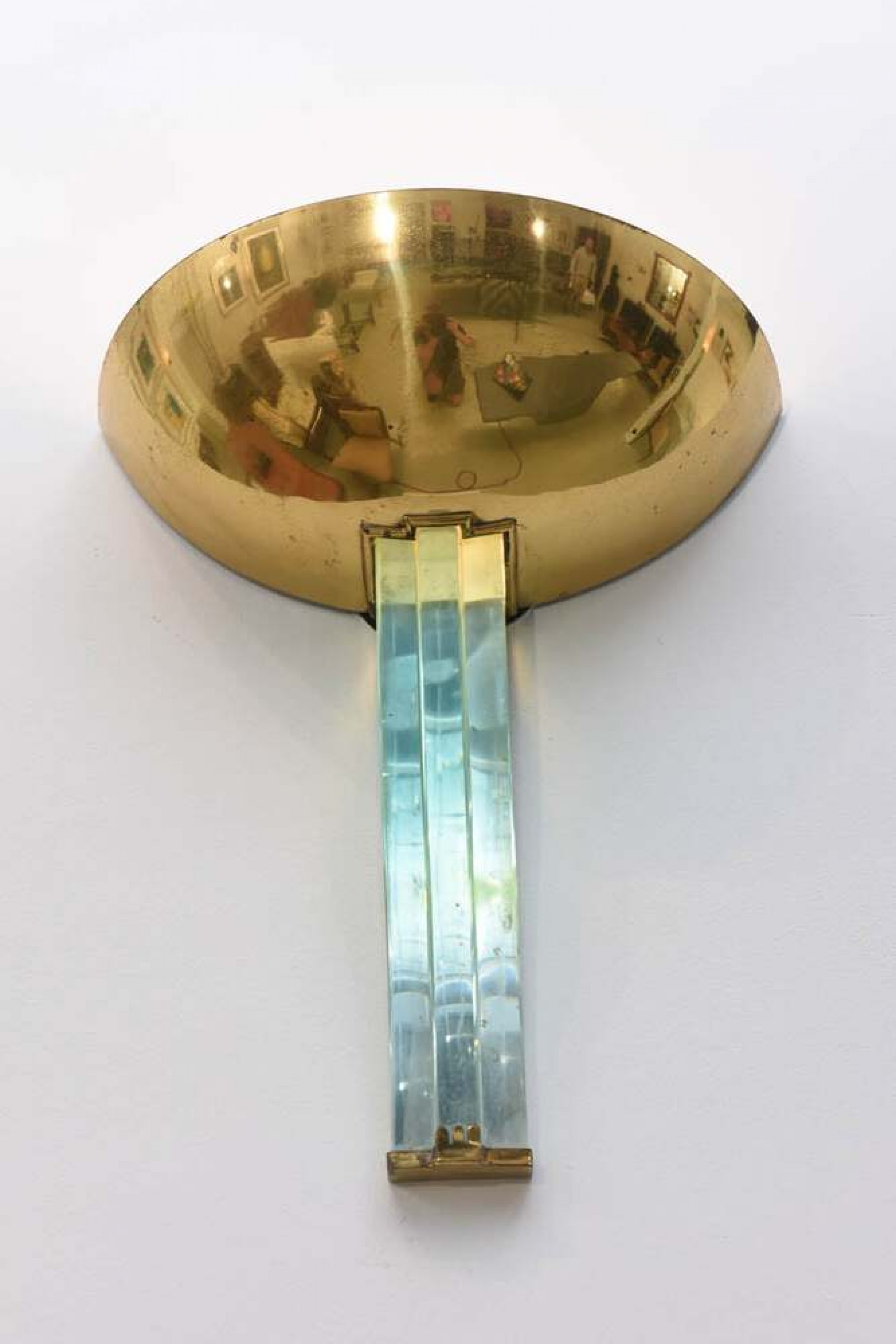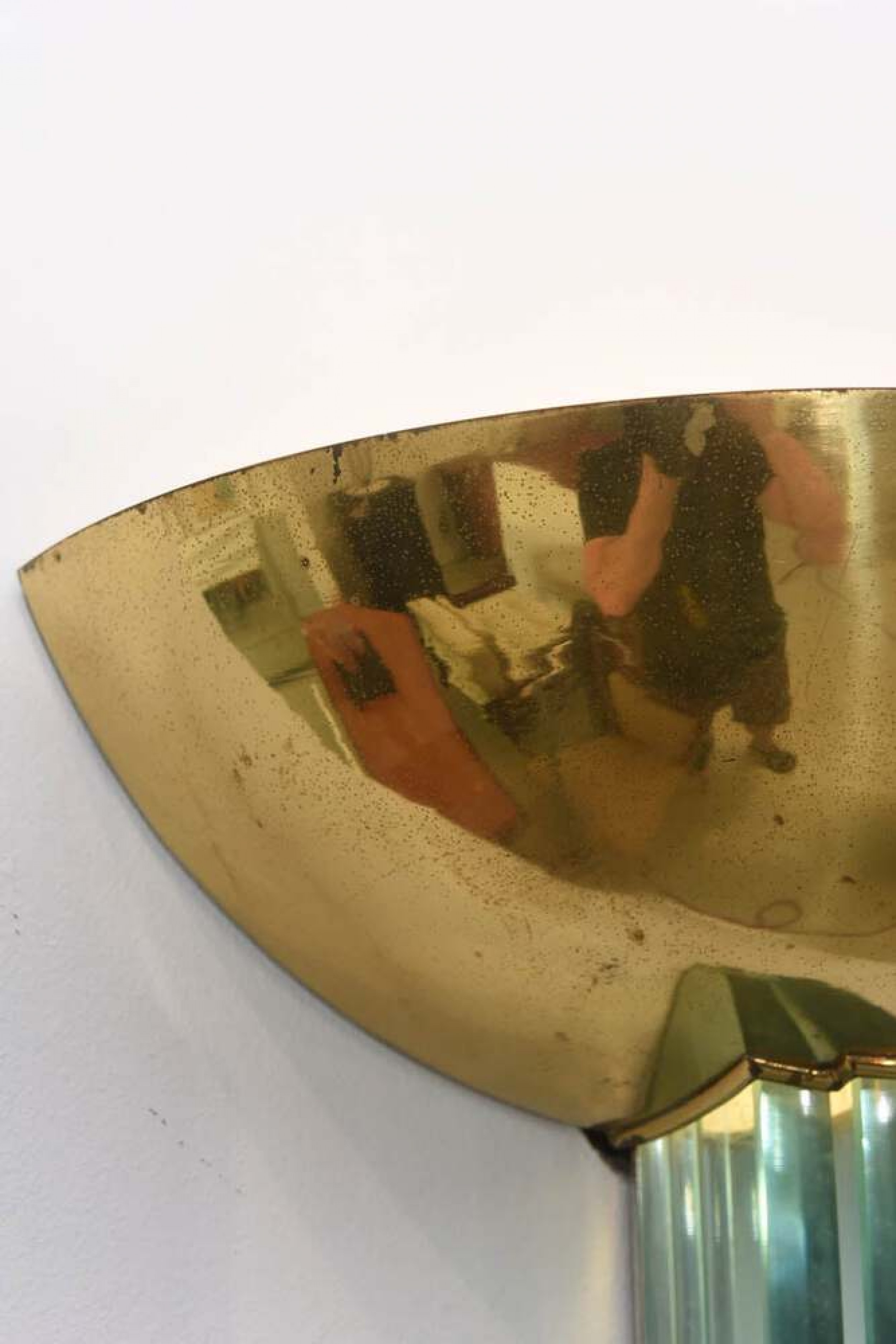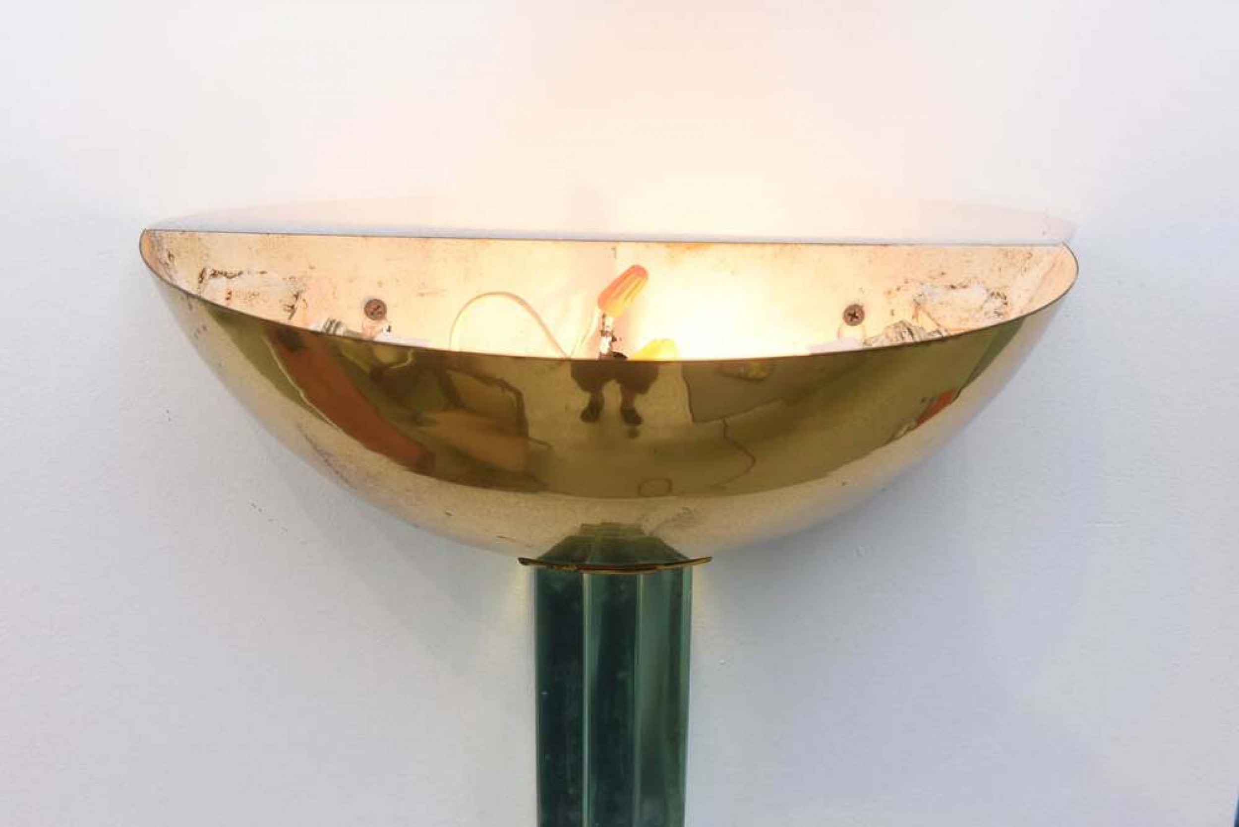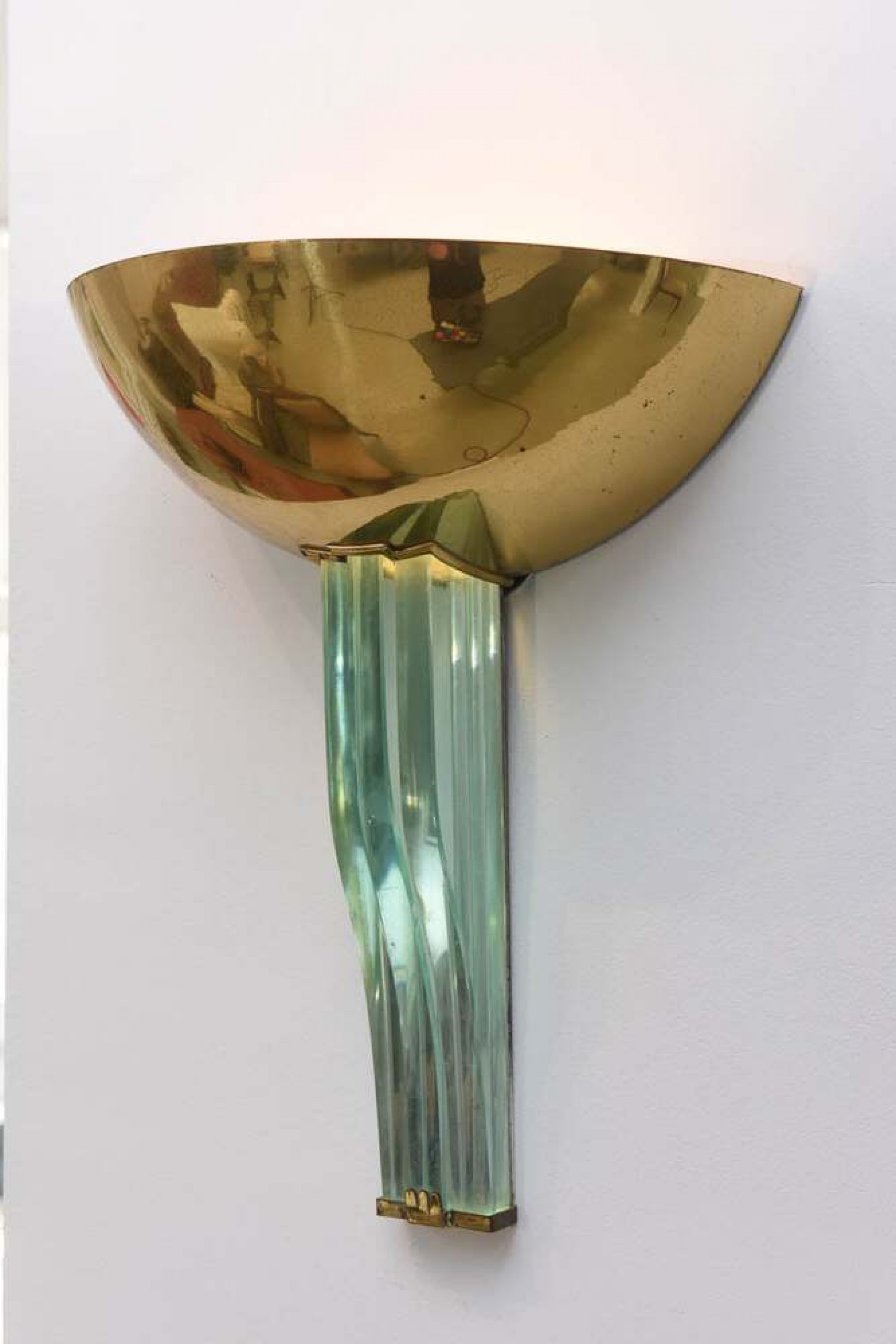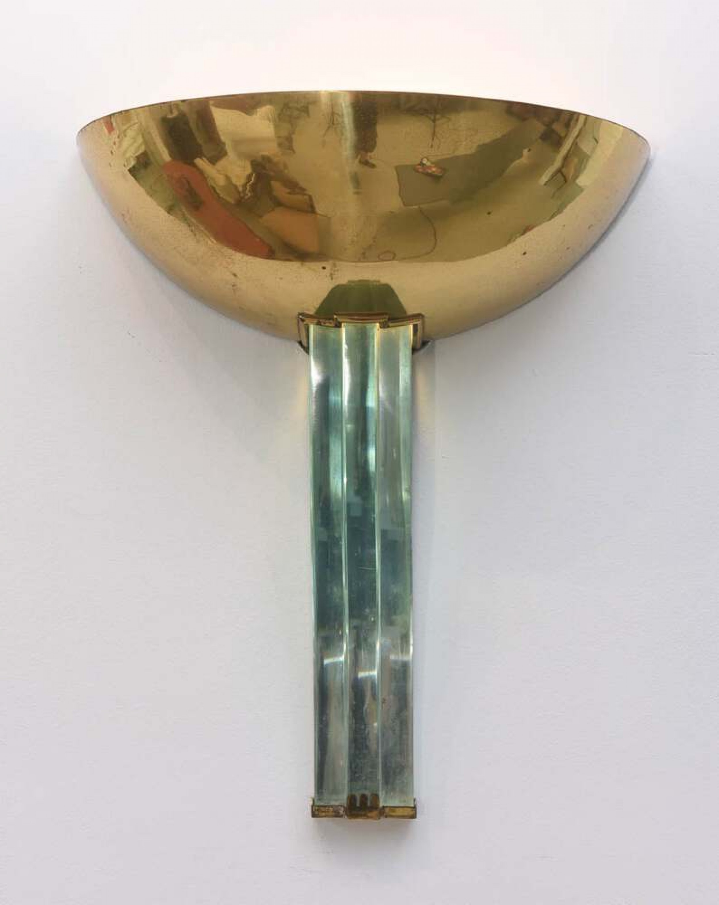 Style: Mid-Century Materials & Techniques: Brass, glass Category: Lighting Good; Wear consistent with age and use