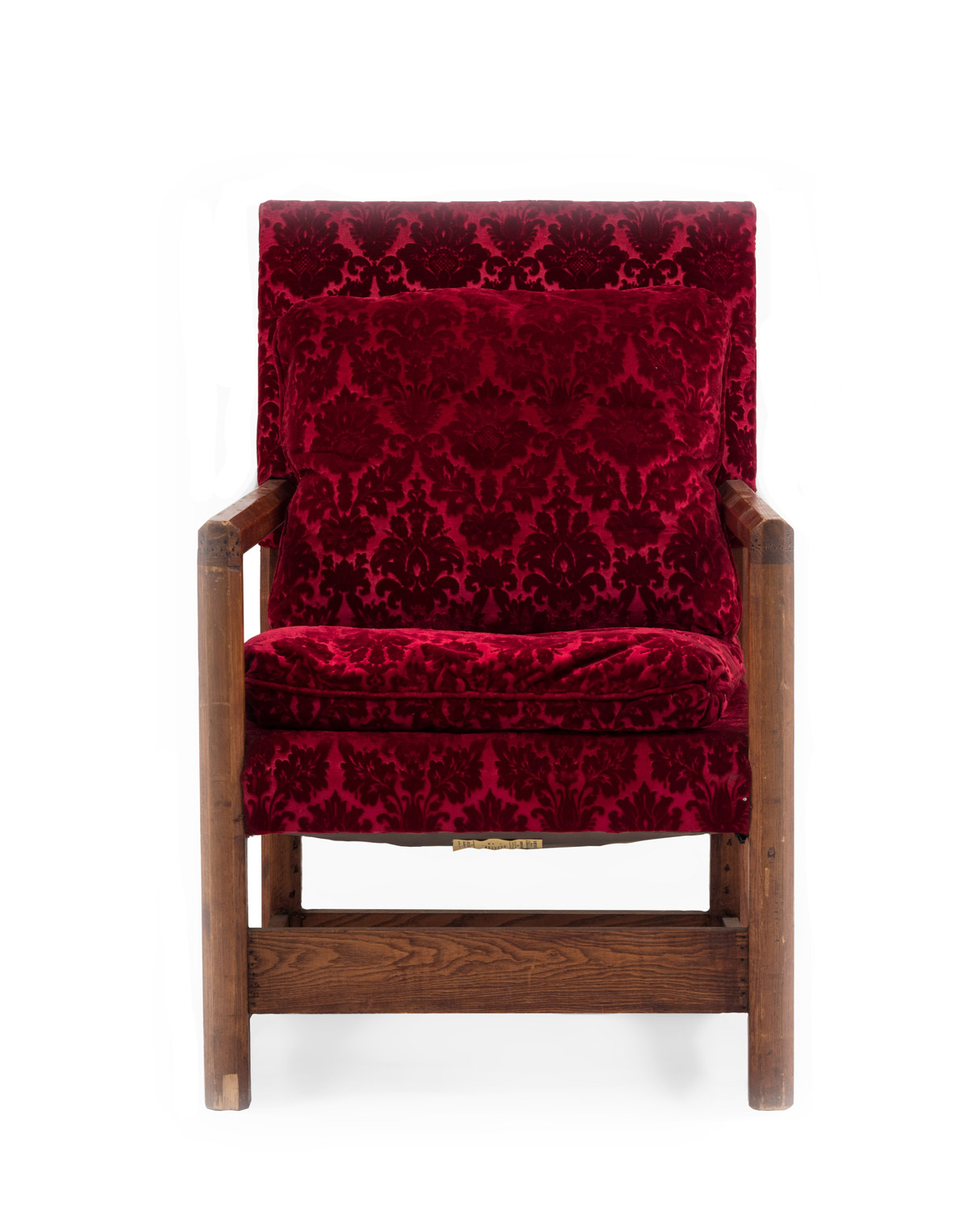 Style: English Materials & Techniques: Wood, oak, velvet Category: Seating