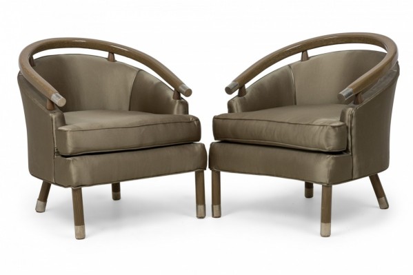 Pair of Romweber Mid-Century American Limed Oak & Upholstered Revolving Club / Armchairs