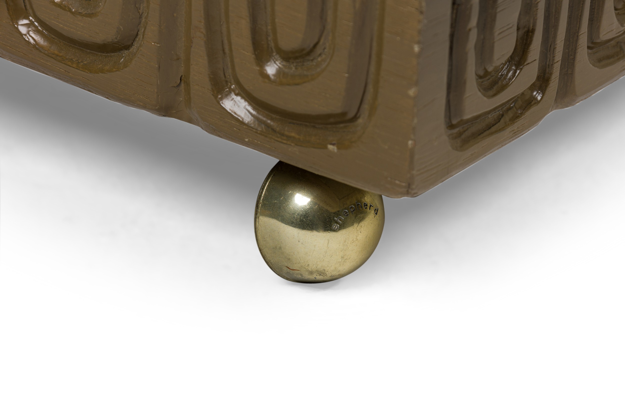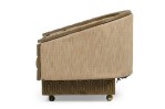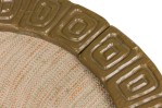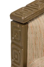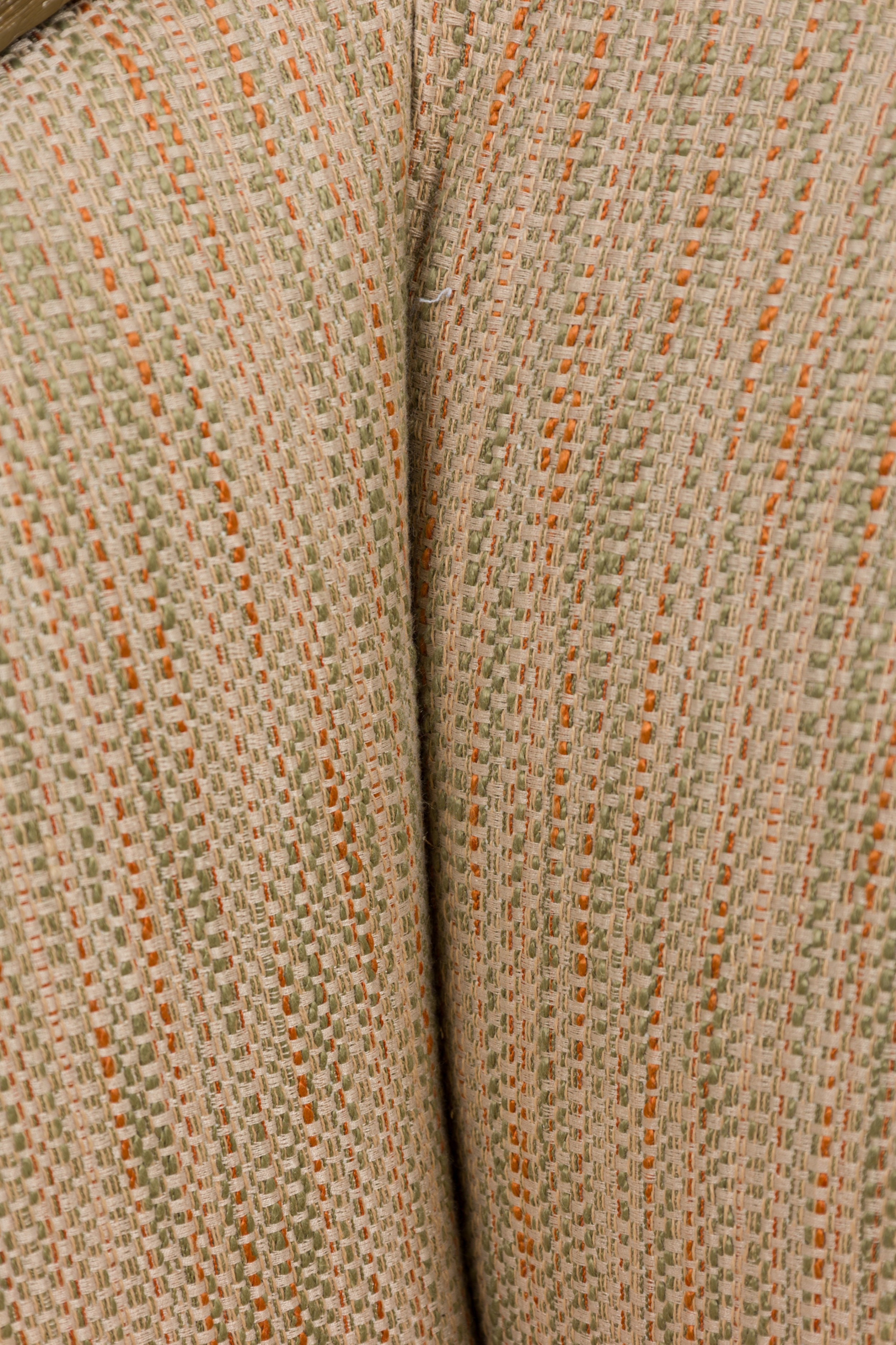 Style: Mid-Century Materials & Techniques: Brass, fabric, metal, upholstered, wood, woven Category: Seating Fair; Minor structural damages