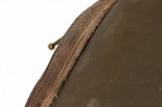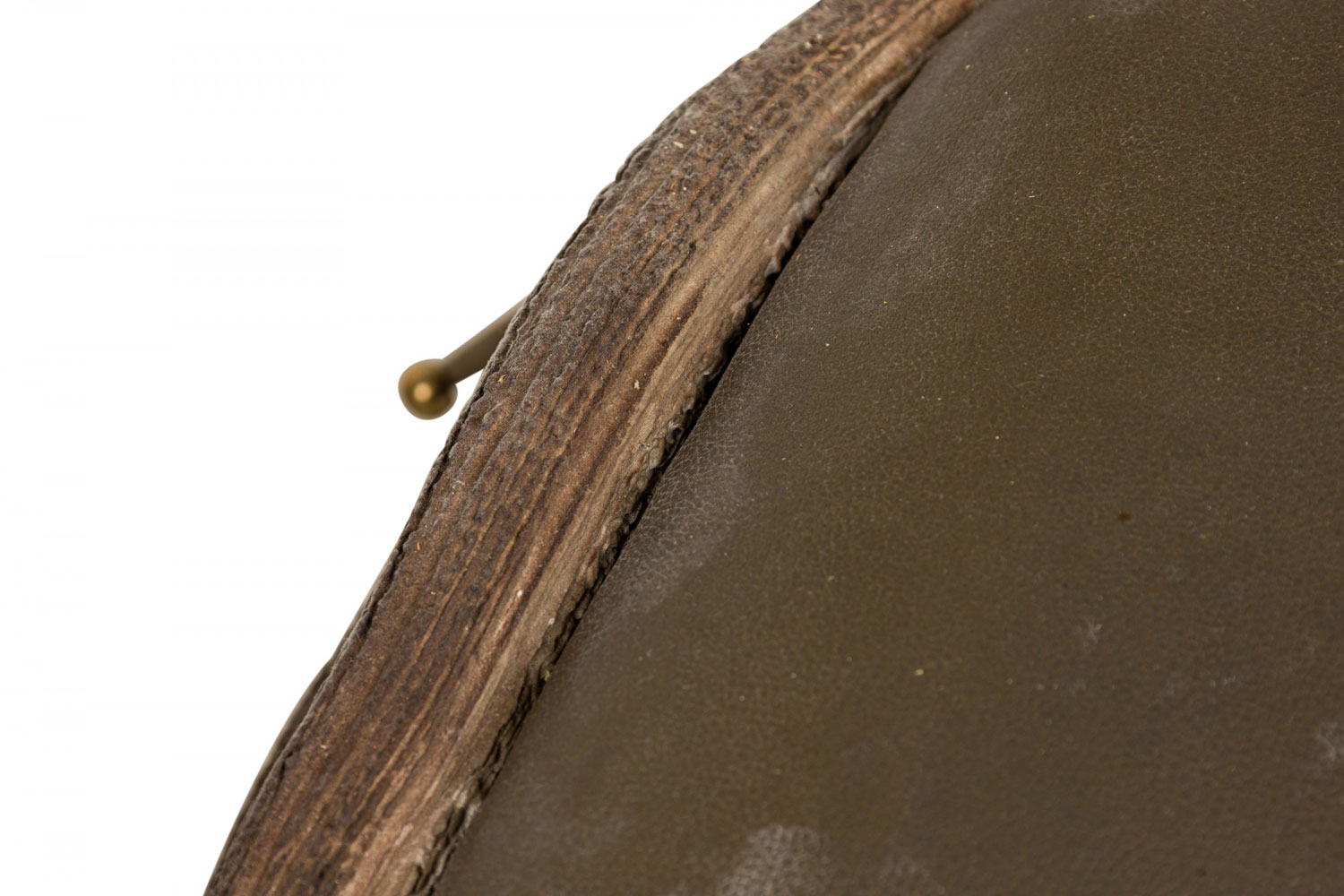 Style: Rustic Materials & Techniques: Brass, leather, metal, resin, upholstered Category: Seating, Rustic Good; Wear consistent with age and use