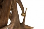 PAIR of Rustic Continental-style armchairs with resin faux moose and deer antler constructed frame with points capped with decorative brass balls, and dark olive green upholstered seats and backs. (PRICED AS PAIR)(Similar settee: 063381).