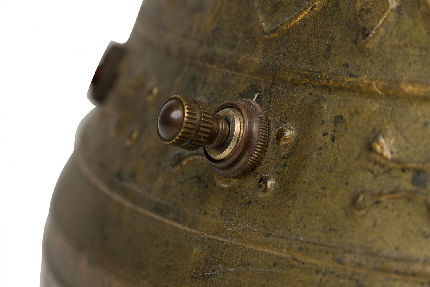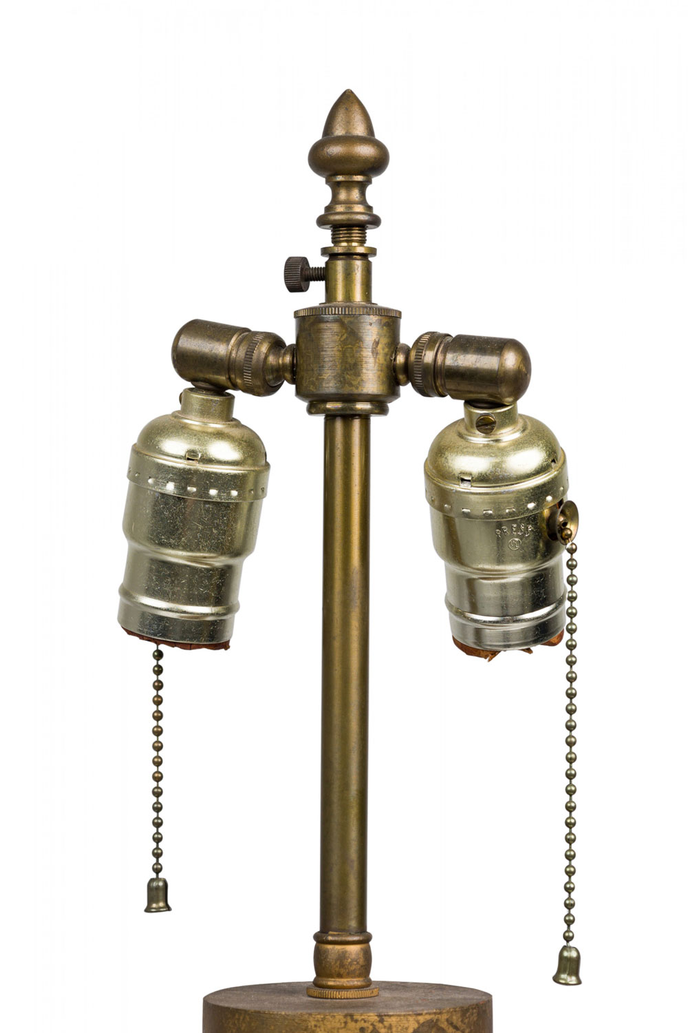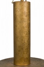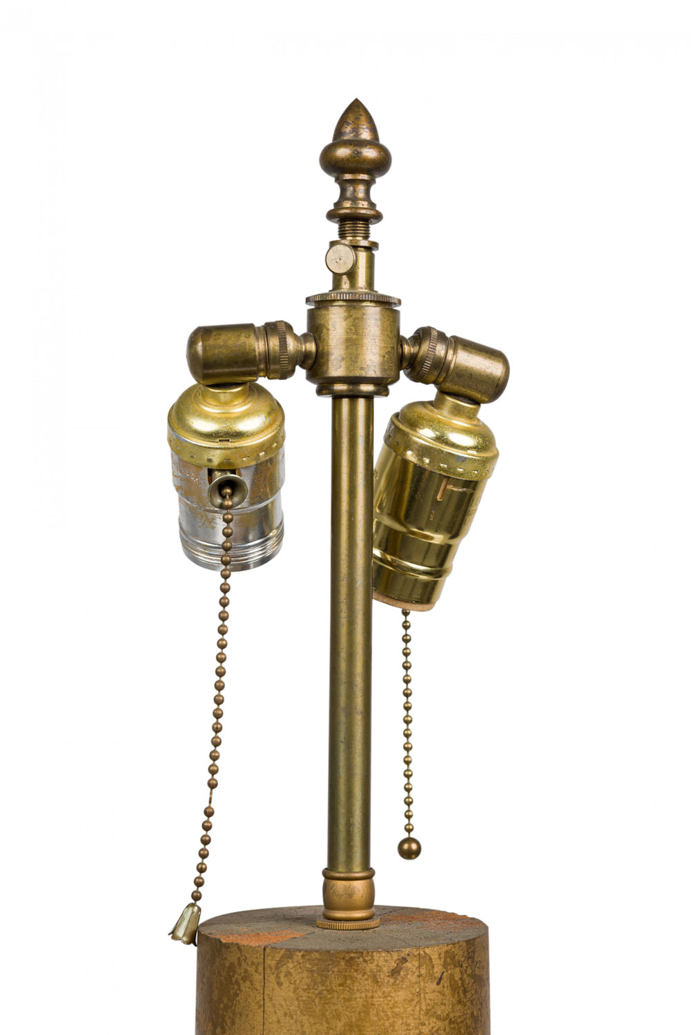 Style: Mid-Century Materials & Techniques: Brass, metal, wood Category: Lighting Condition: Drum lamp: 34" height x 9.5" diameter, both lamps need new cords, natural splits in wood stems but stable. Ships without shades. Good; Wear consistent with age and use
