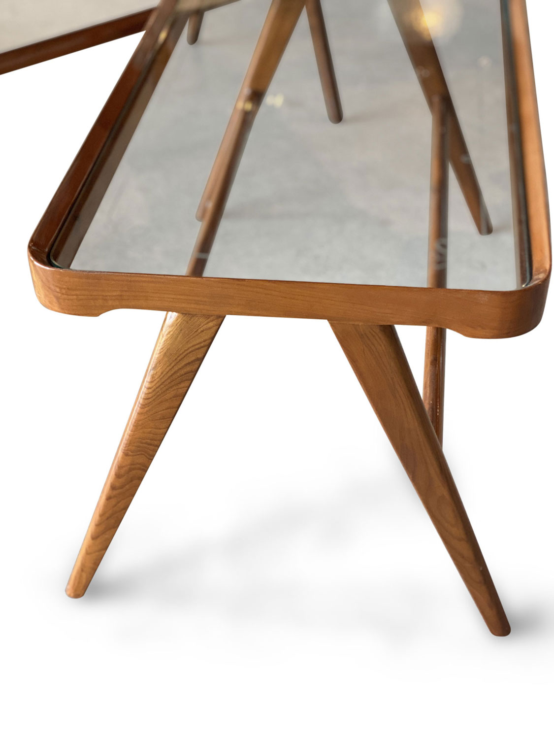 Pair of Similar Italian modern Cherrywood and glass low tables attributed Carlo De Carli