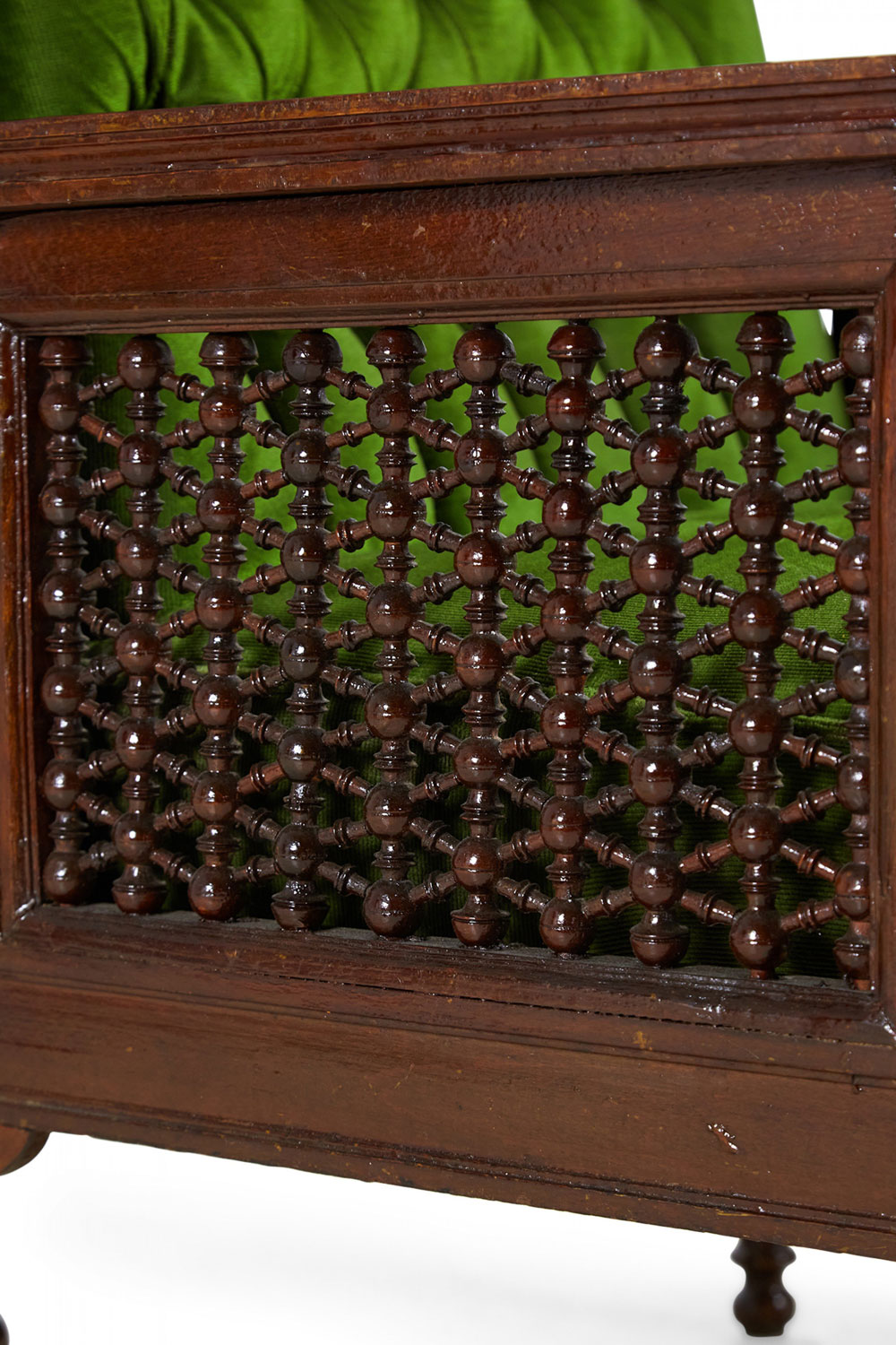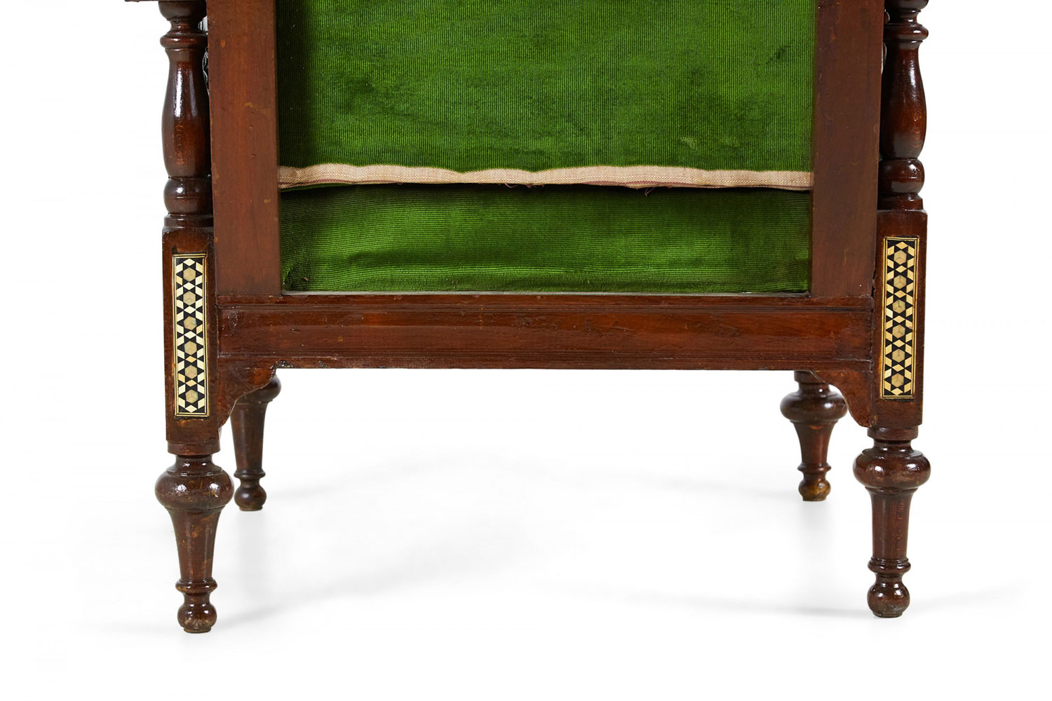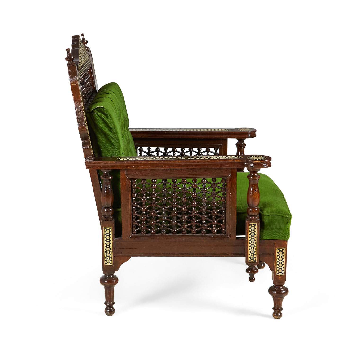 Style: Middle Eastern Materials & Techniques: Carved, fabric, inlaid, mosaic, pearl / mother-of-pearl, tufted, upholstered, walnut, wood Category: Seating