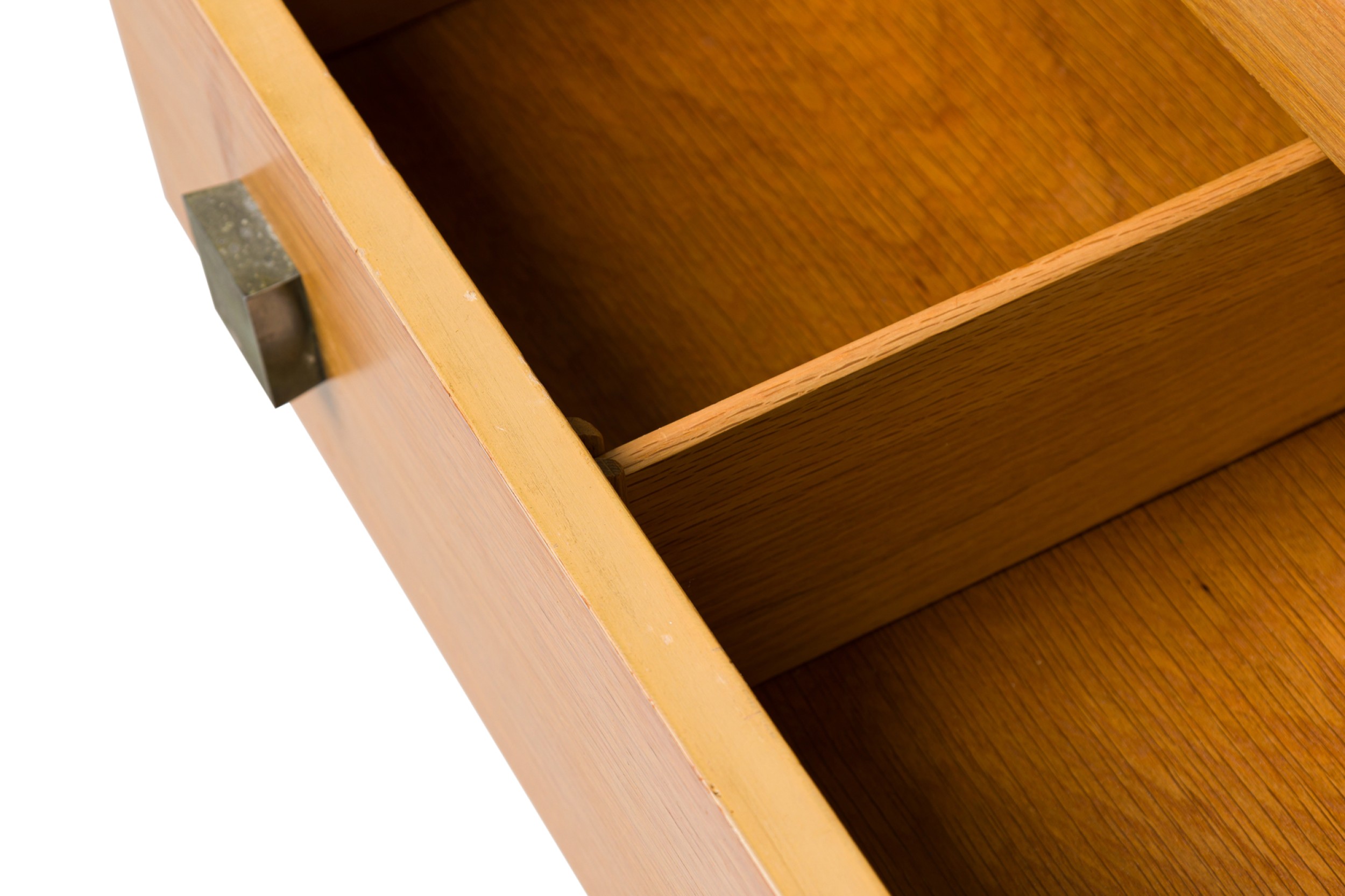 Style: Mid-Century Materials & Techniques: Bleached, brass, metal, patinated, walnut, wood Category: Bedroom Condition: Scuffs to finish. Good; Wear consistent with age and use