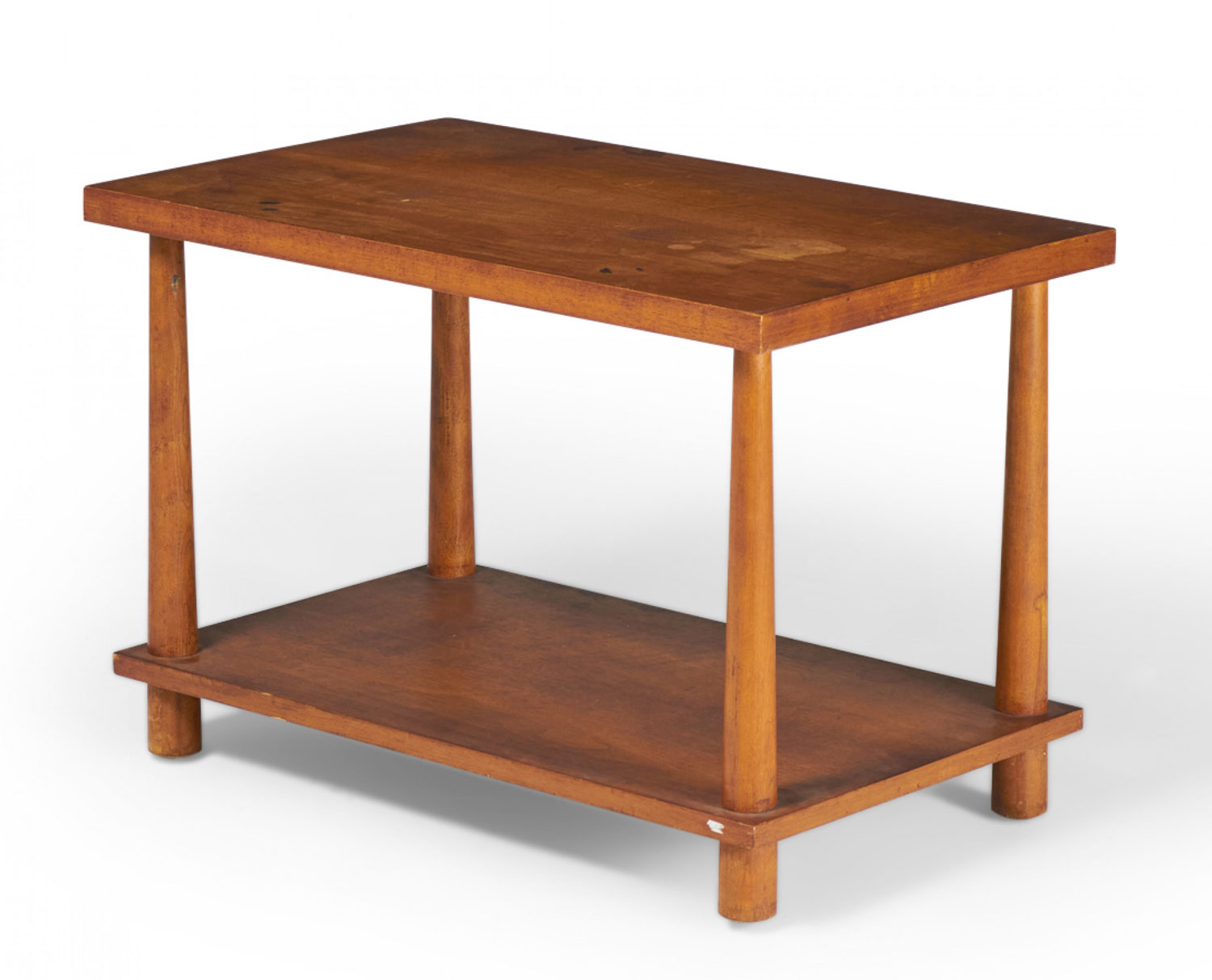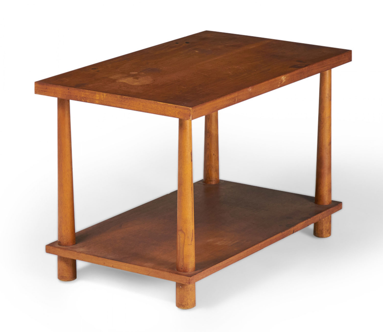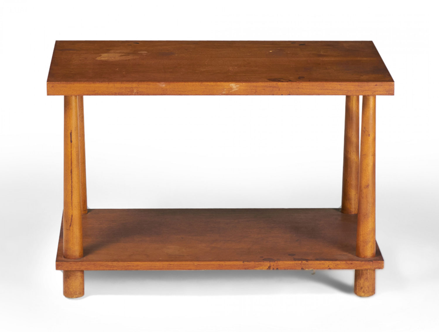 Style: Mid-Century Materials & Techniques: Maple, wood Category: Tables Condition: Damage to finish. Good; Wear consistent with age and use
