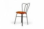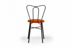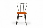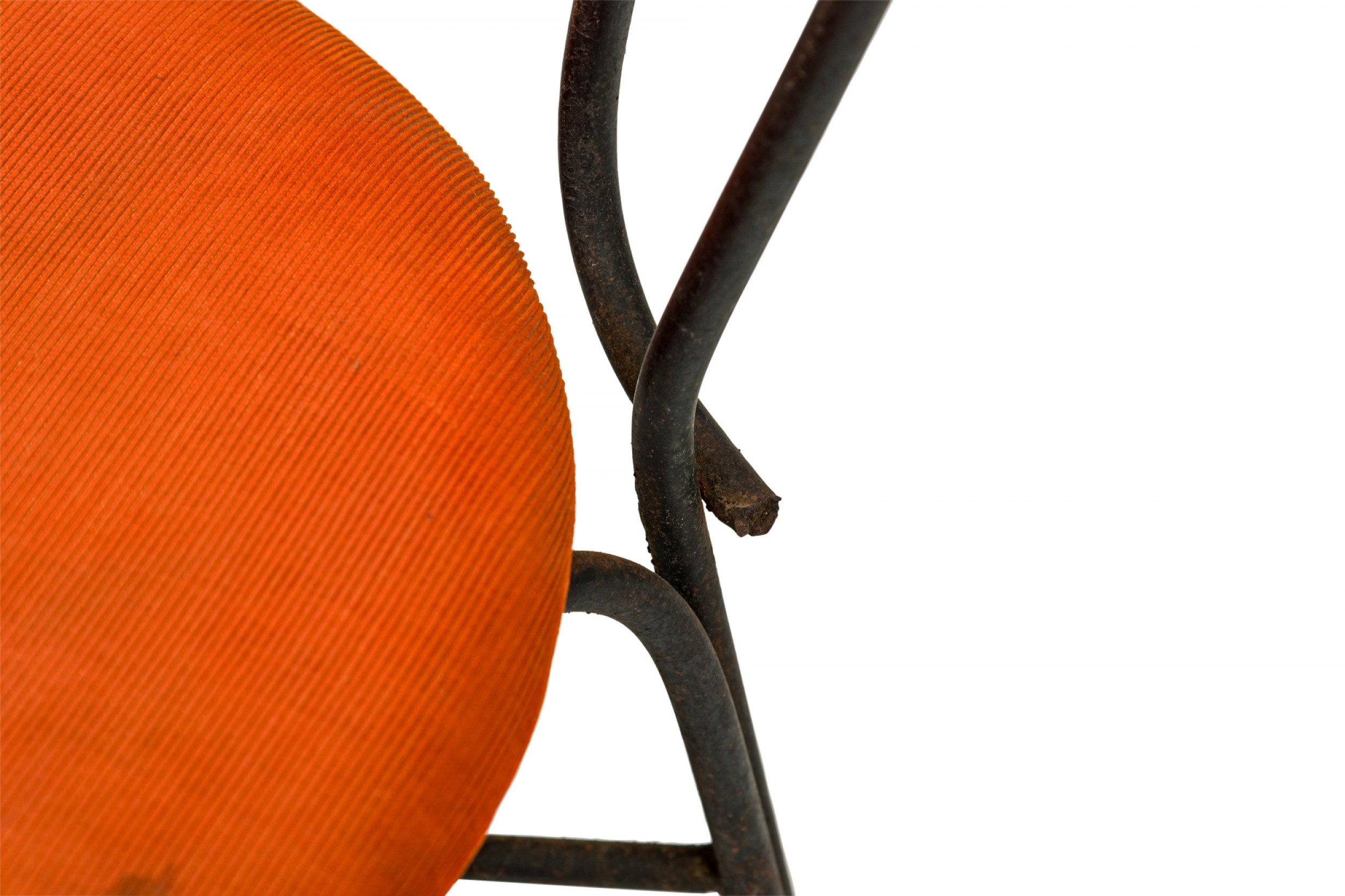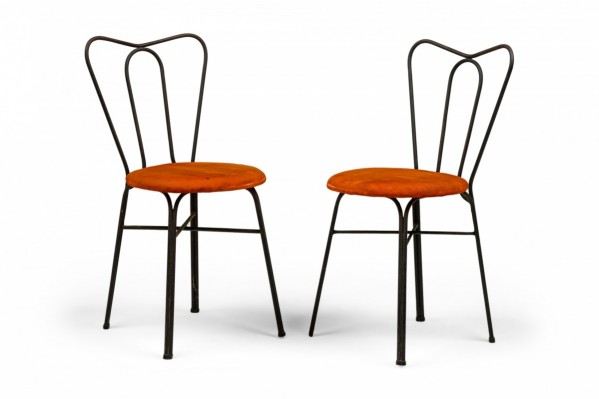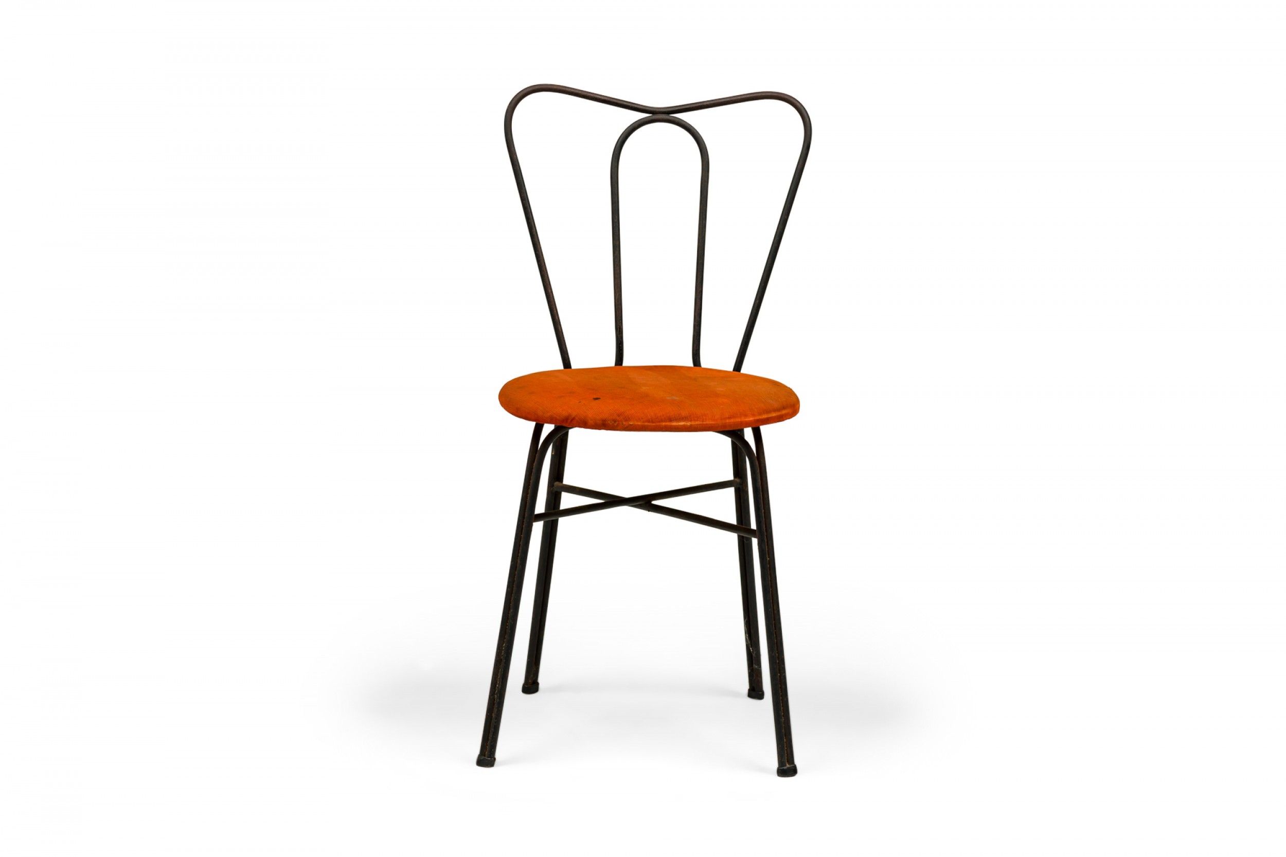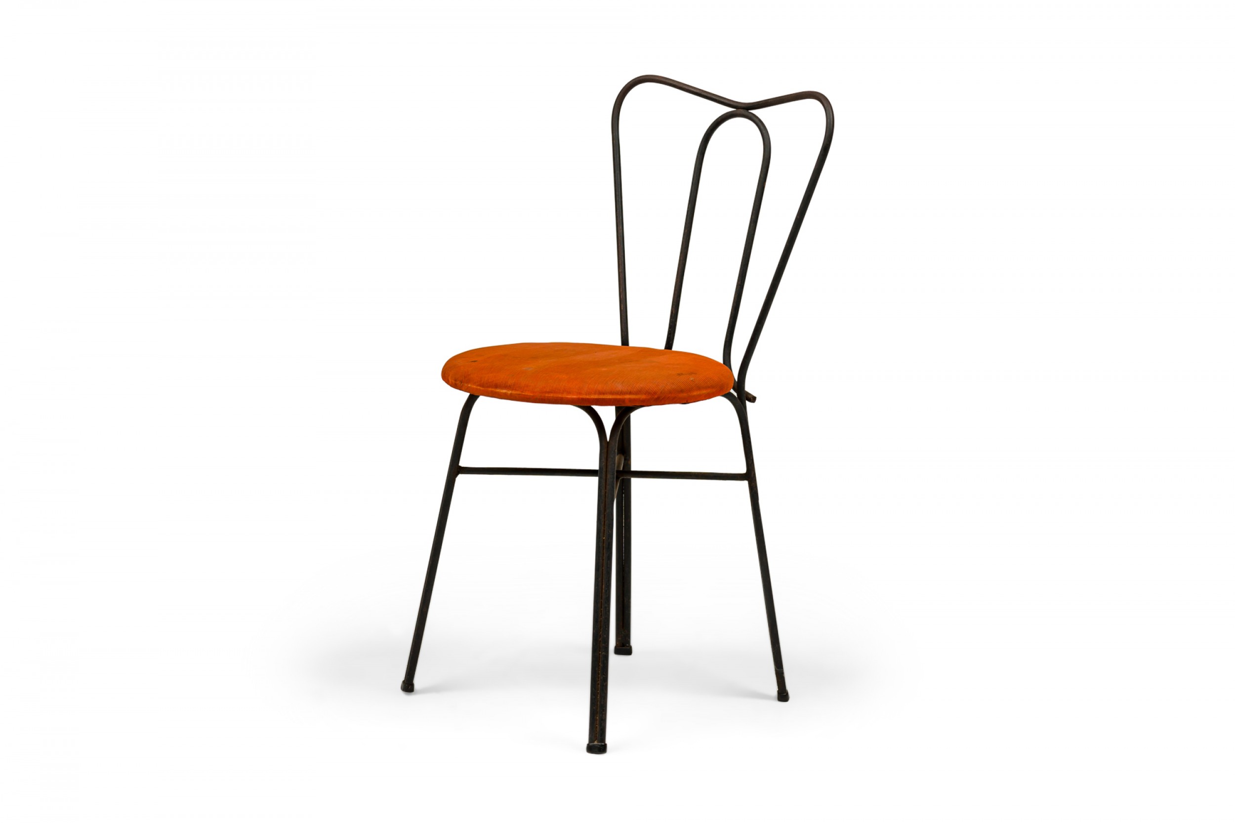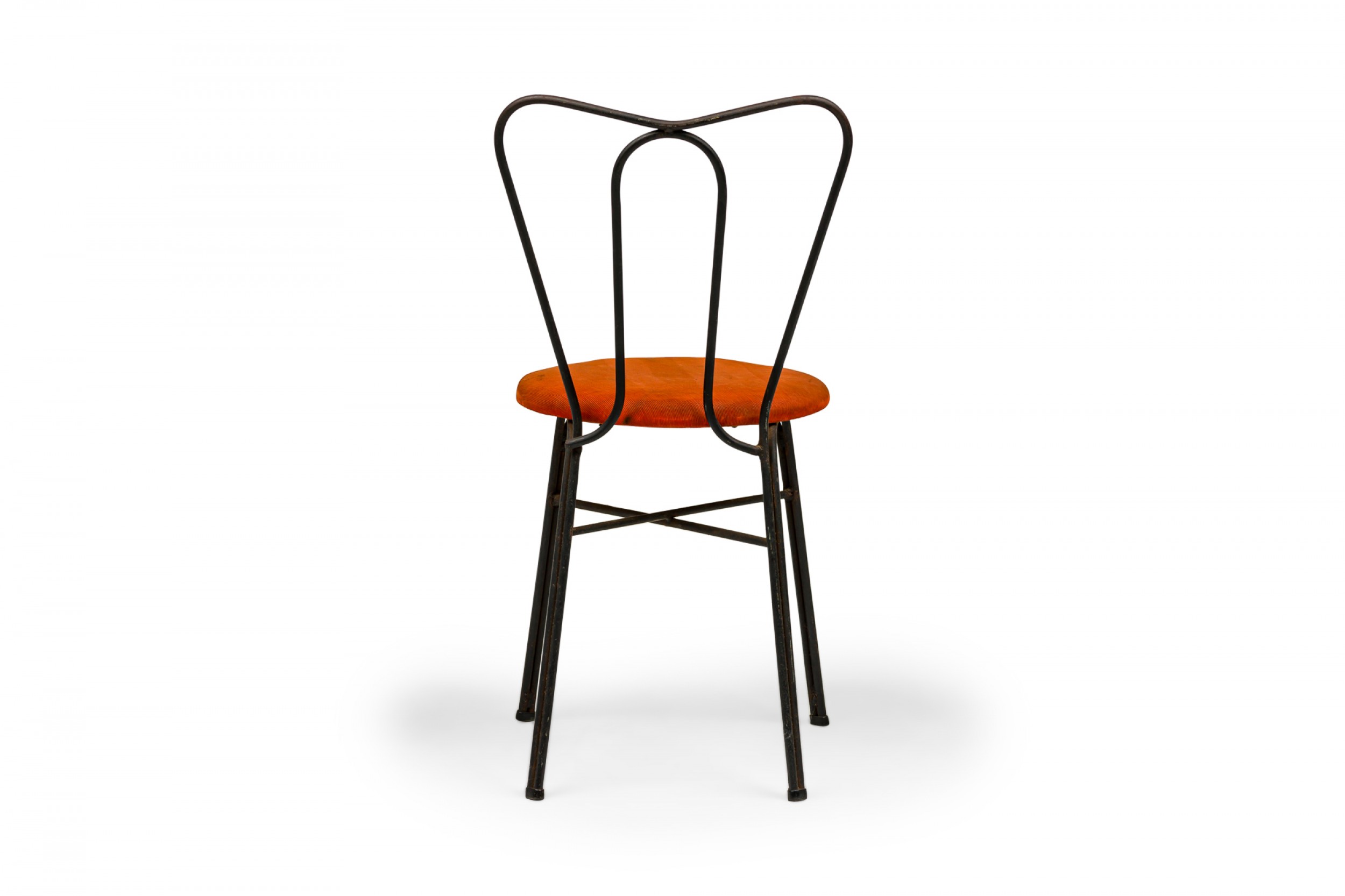 Pair of Tony Paul American Mid-Century Black Iron and Orange Upholstery Ice Cream Parlor Side Chairs