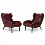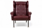 Pair of Westnofa Mid-Century Norwegian Burgundy Leather Upholstered Wing Armchairs