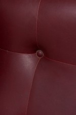 PAIR of Mid-Century Norwegian (1970s) wing back armchairs with low side arms upholstered in button tufted deep burgundy red leather and standing on flat bar metal legs with 4 adjustable disc feet. (WESTNOFA) (PRICED AS PAIR).