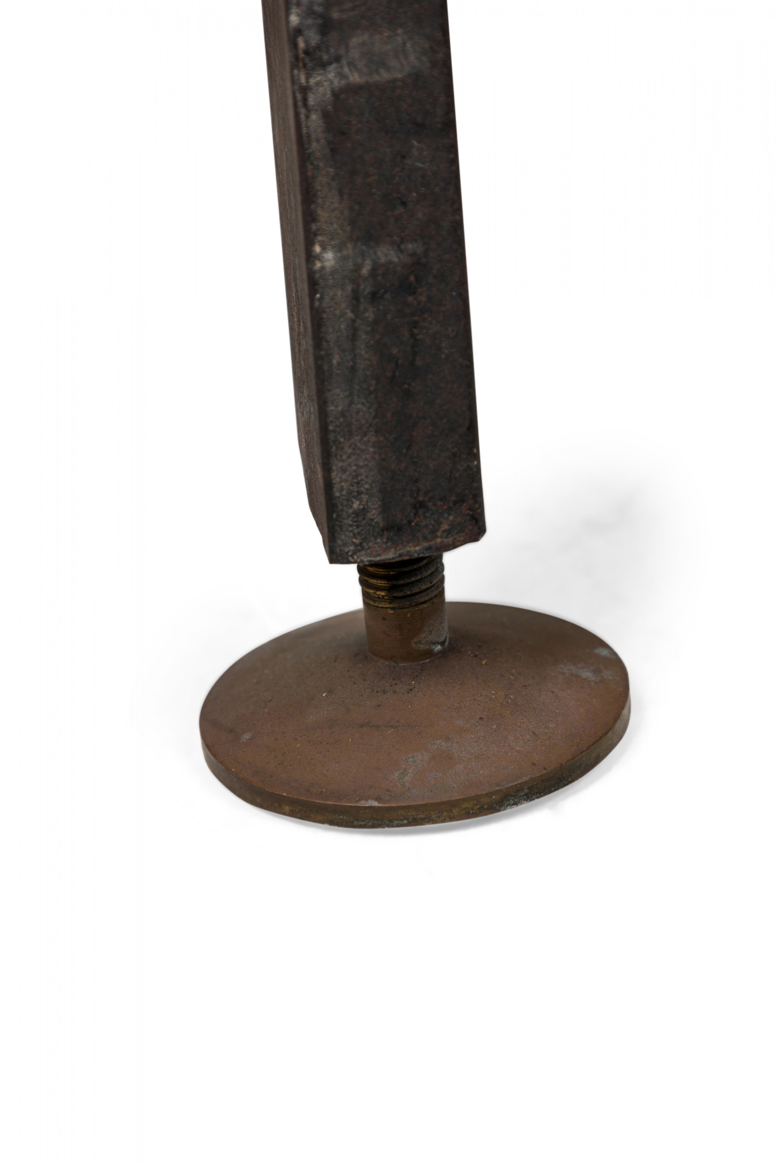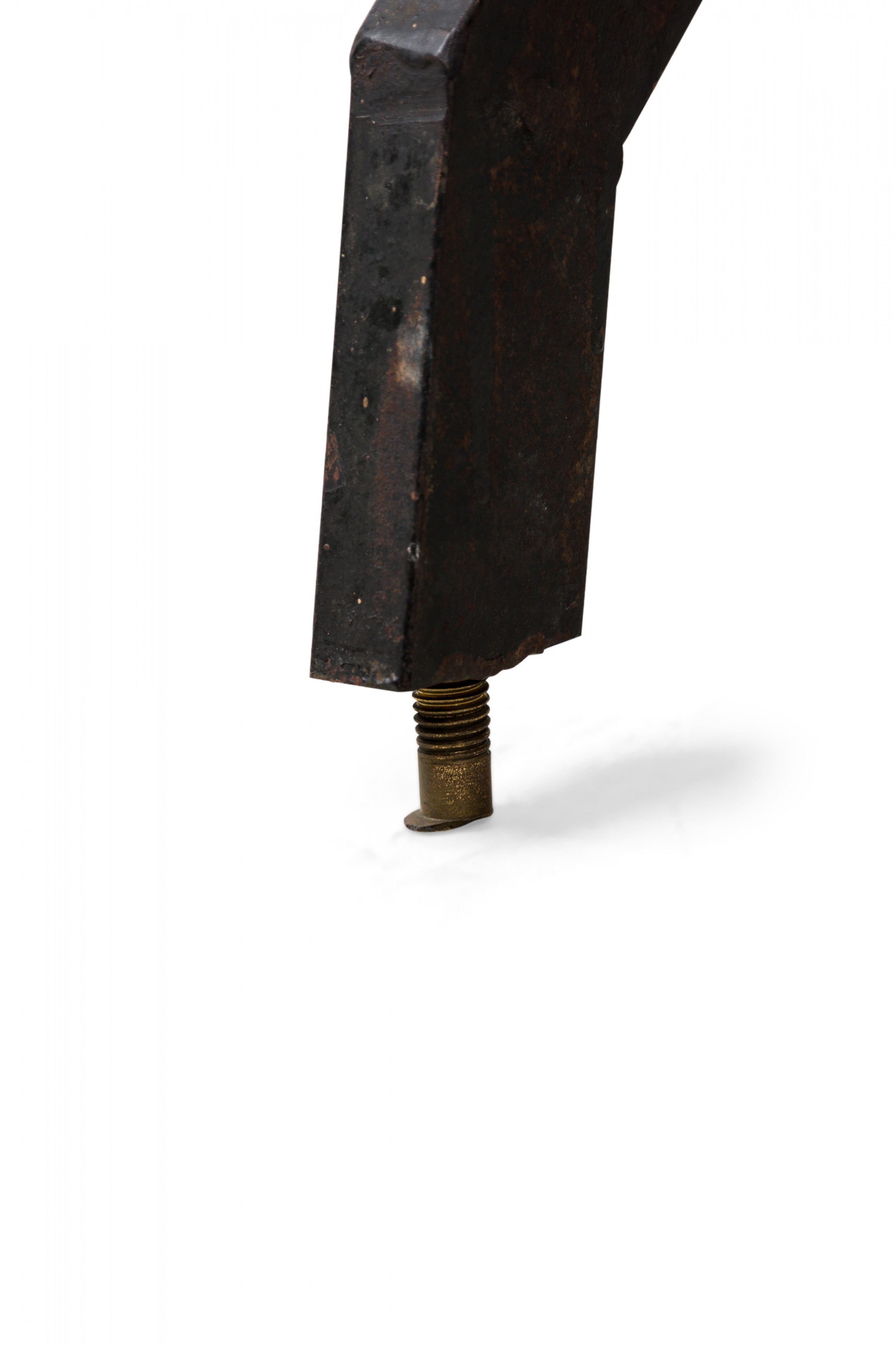 Style: Mid-Century Materials & Techniques: Leather, metal, tufted, upholstered Category: Seating Condition: Wear & tear on upholstery. One large whole in the seat of one chair. 1 foot missing on each chair. Good; Minor losses
