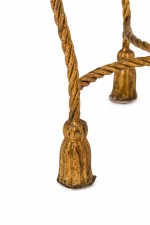 Palladio Italian Mid-Century Rope and Tassel Gilt Iron and Red Upholstery Vanity Bench
