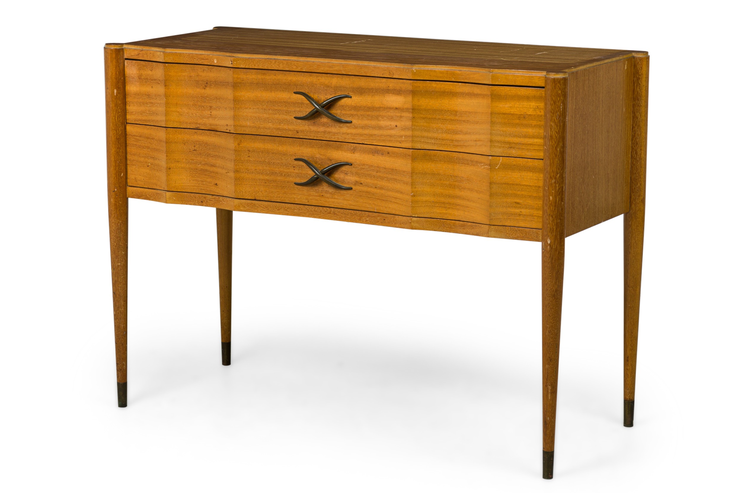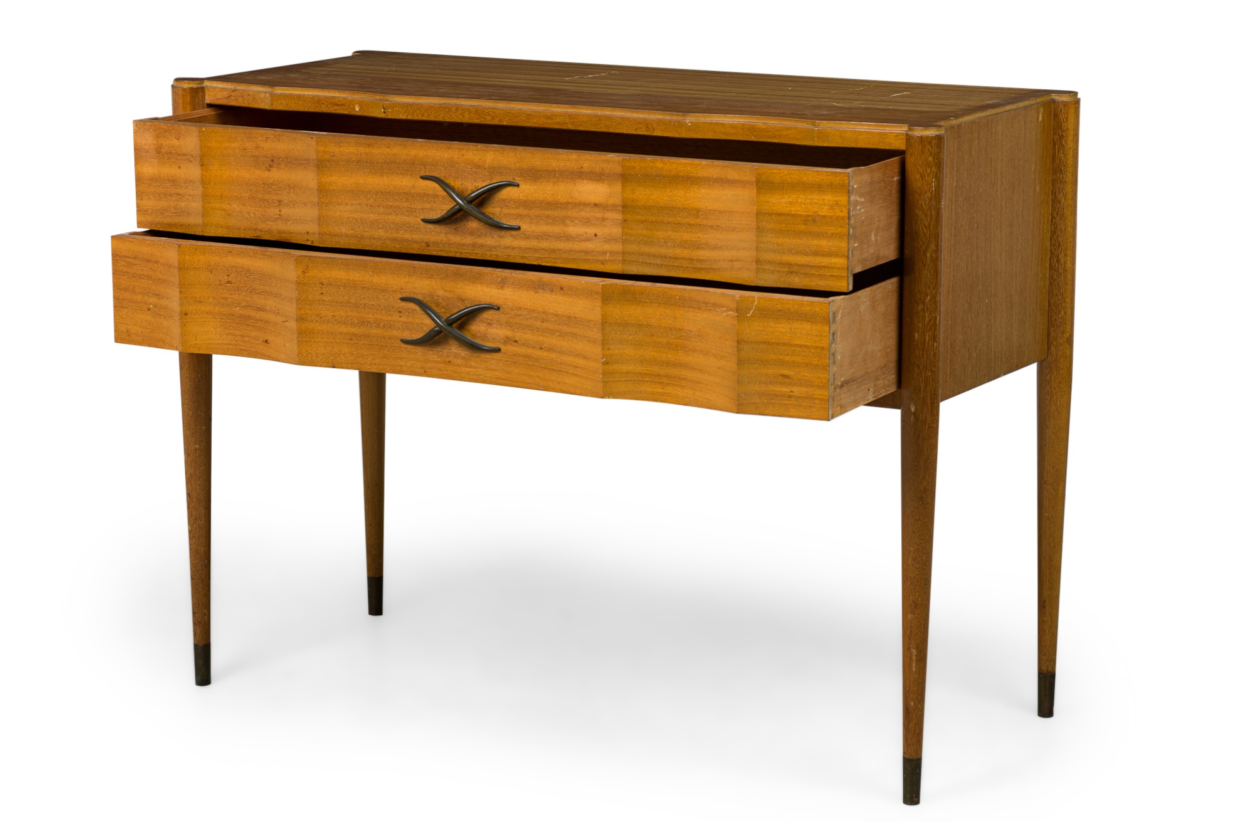 Paul Frankl Continental Mid-Century Walnut and Brass 2-Drawer Console Table
