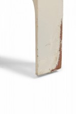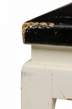 Style: Mid-Century Materials & Techniques: Cork, painted, wood Category: Tables Condition: Paint is chipping in multiple places, especially along edges of tabletop. Good; Minor losses