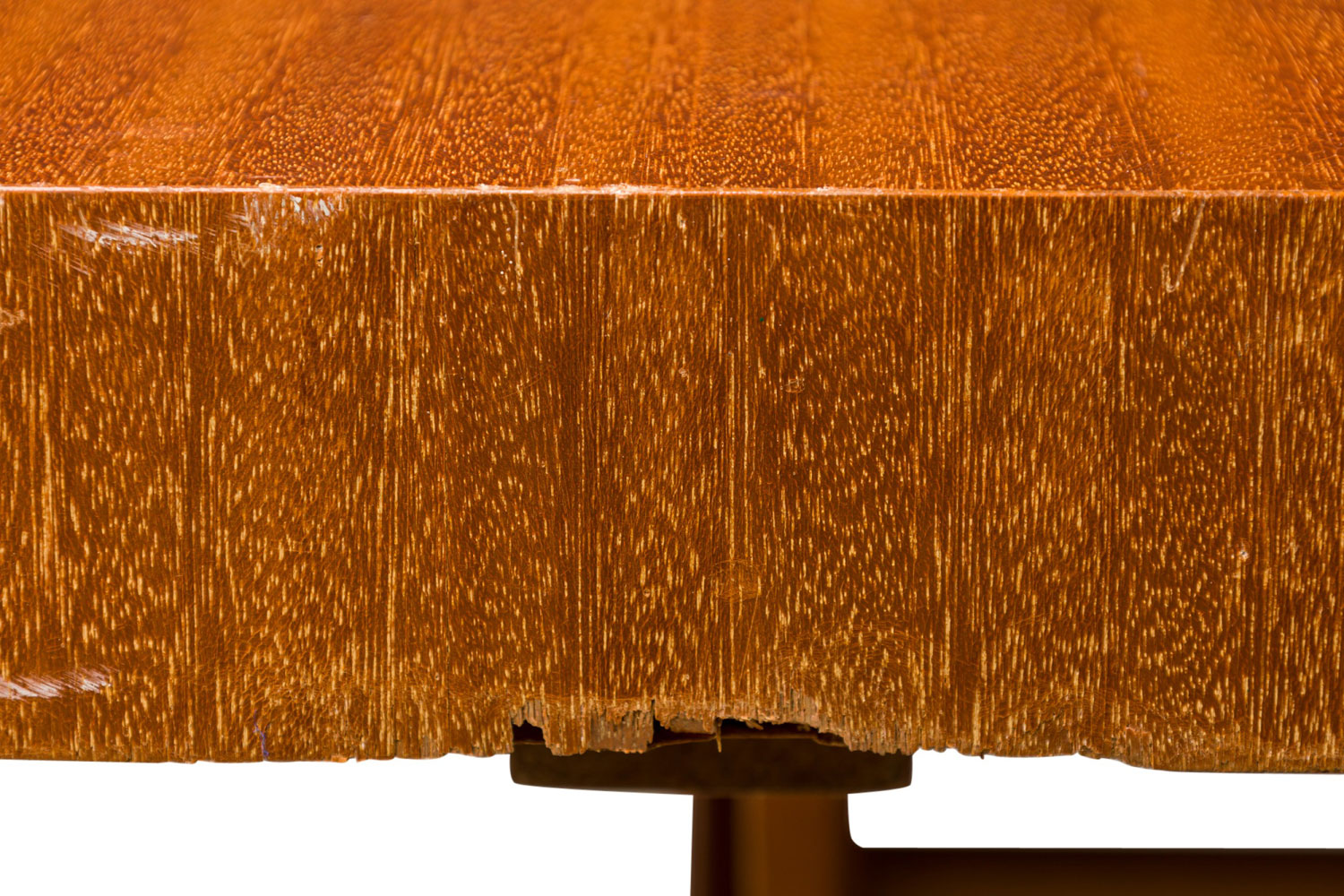 Style: Mid-Century Materials & Techniques: Mahogany, wood Category: Dining Room Condition: Wear and losses to veneer. Good; Minor losses