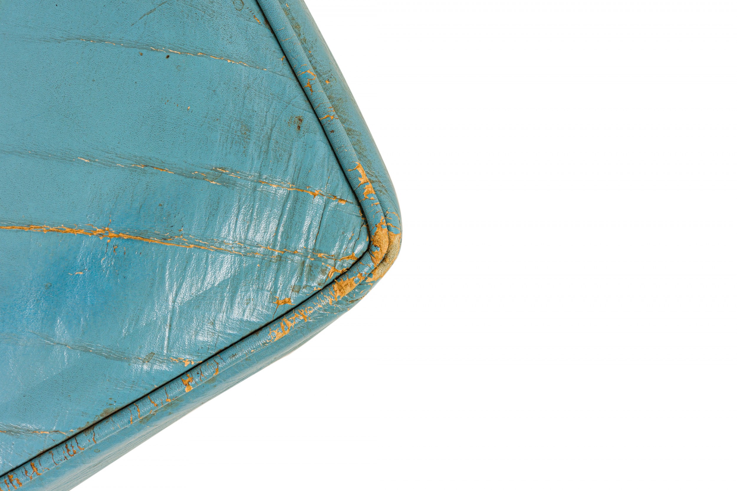 Paul McCobb for Directional American Mid-Century Rectangular Blue Leather and Walnut Ottoman