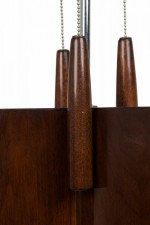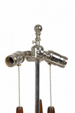 Style: Mid-Century Materials & Techniques: Ceramic, metal, wood Category: Lighting Condition: Electrics working. Ships without shade. Good; Wear consistent with age and use