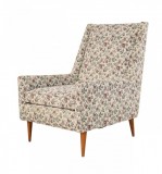 Paul McCobb Style Mid-Century Modern Beige Floral Upholstered Lounge/Armchair
