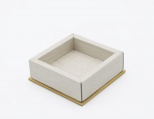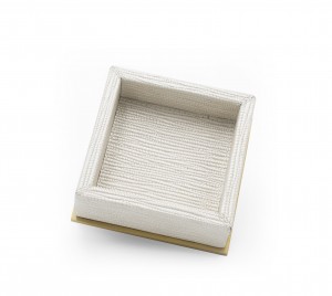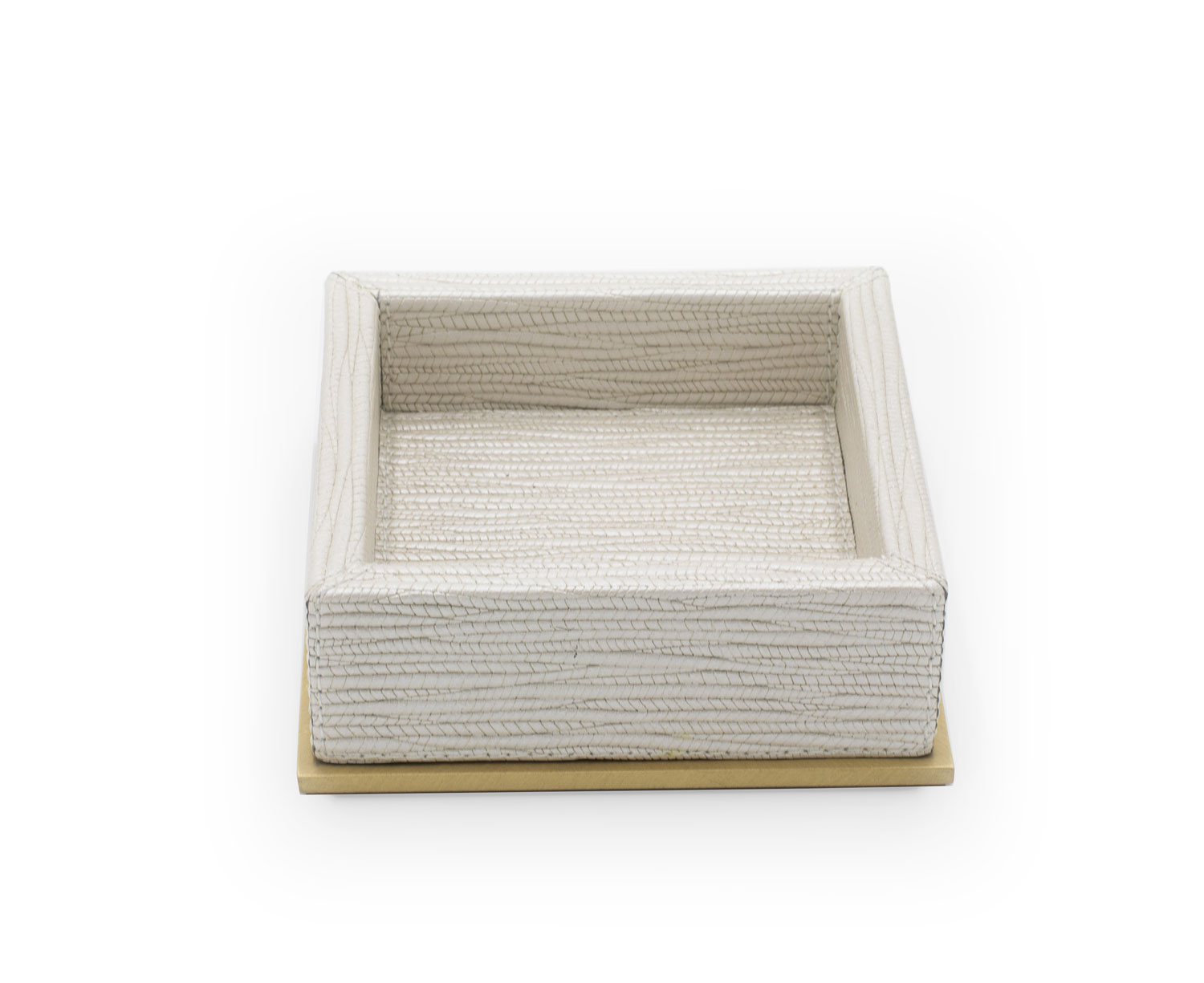 Contemporary square pearlescent valet tray with a beige suede interior and gilt metal bottom (Made in Italy) (Related item: MOD023)