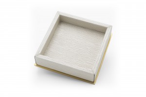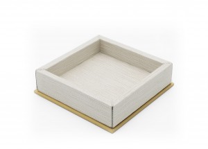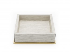 Contemporary square pearlescent valet tray with a beige suede interior and gilt metal bottom (Made in Italy) (Related item: MOD024)