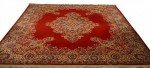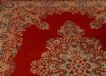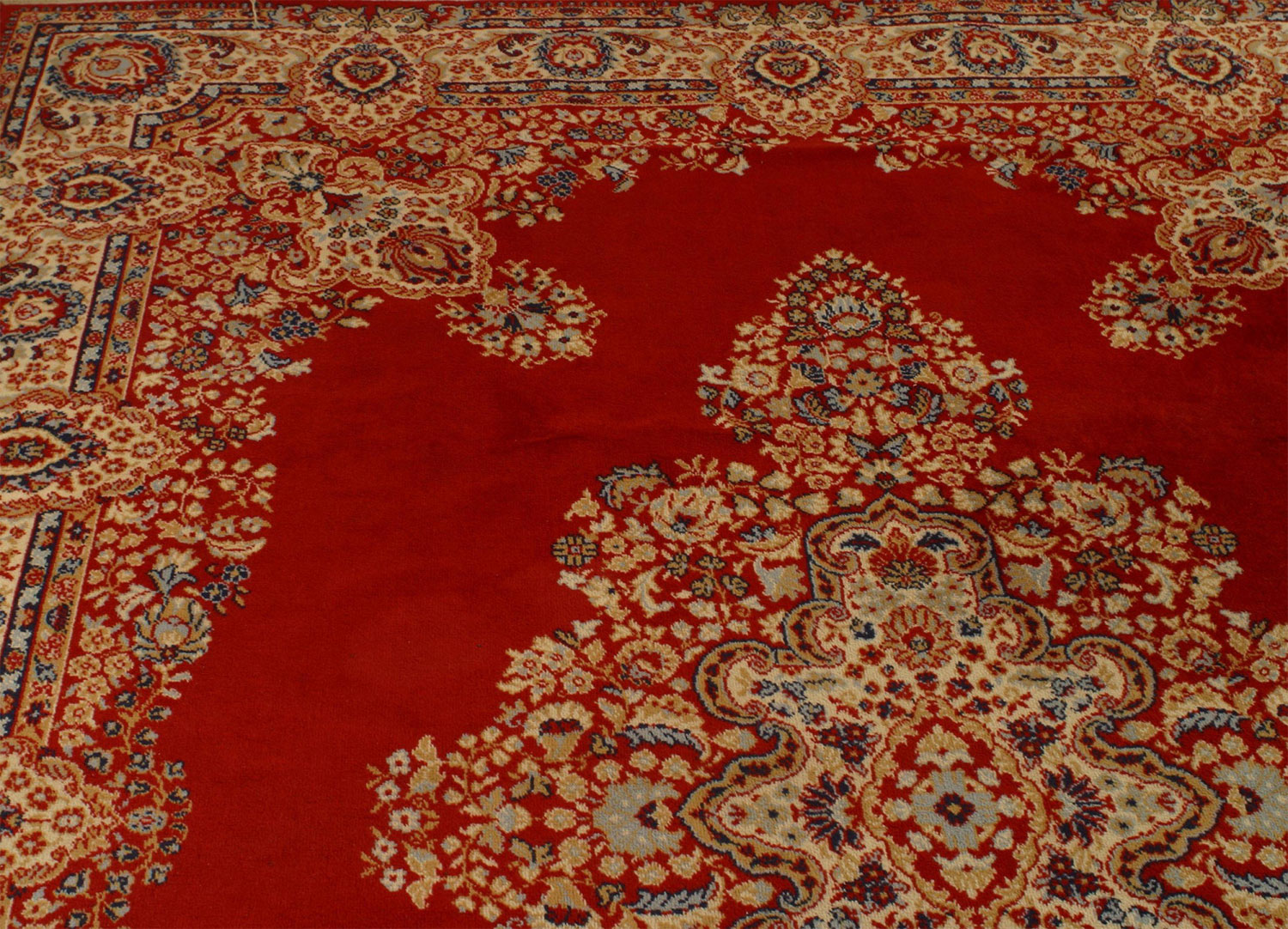 Middle Eastern Persian style rug with red background and gold & beige floral pattern with a center medallion design (app 11' x 8').