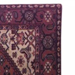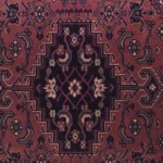 Persian style (19/20th Century) rust velvet table cover with border and blue and beige geometric center.