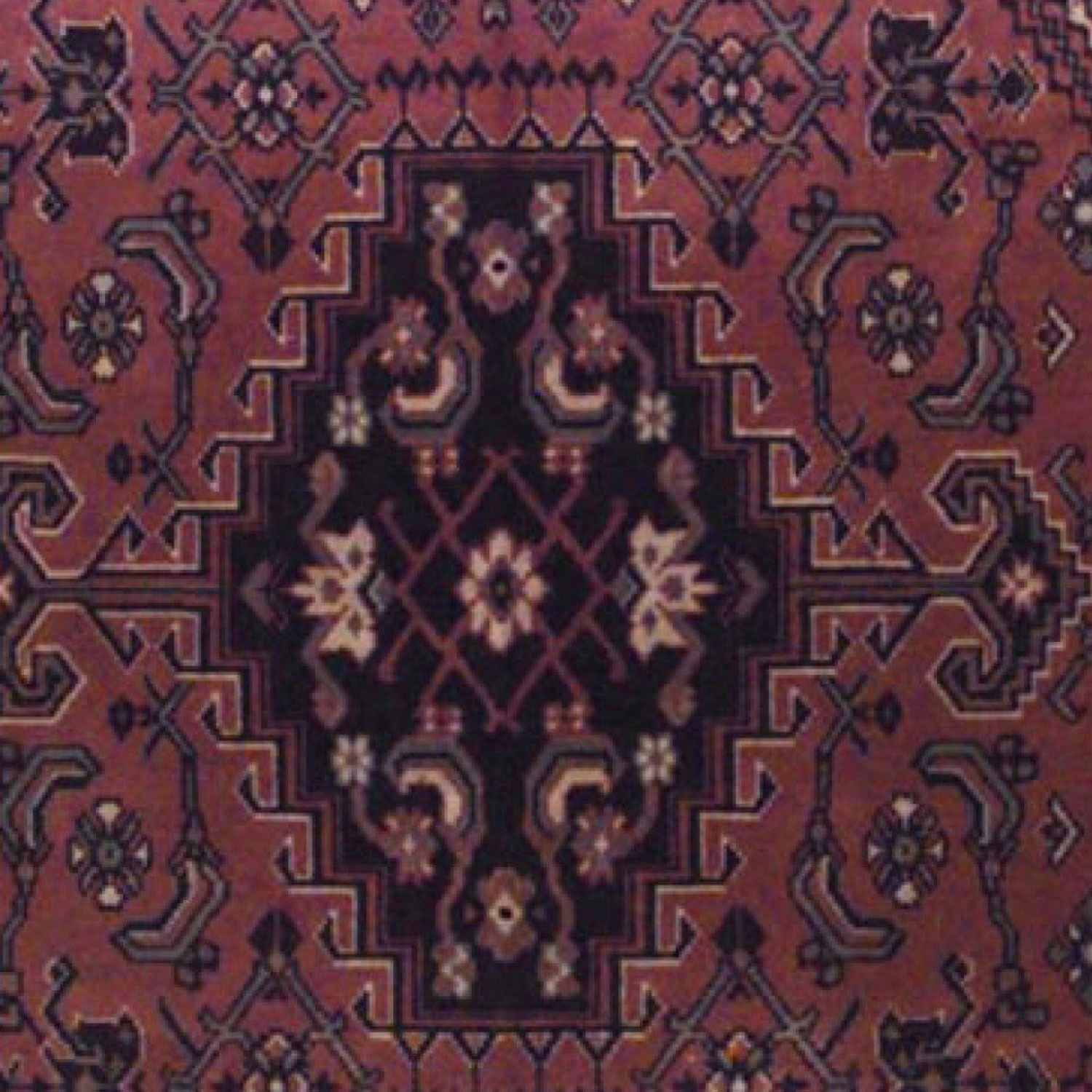 Persian style (19/20th Century) rust velvet table cover with border and blue and beige geometric center..