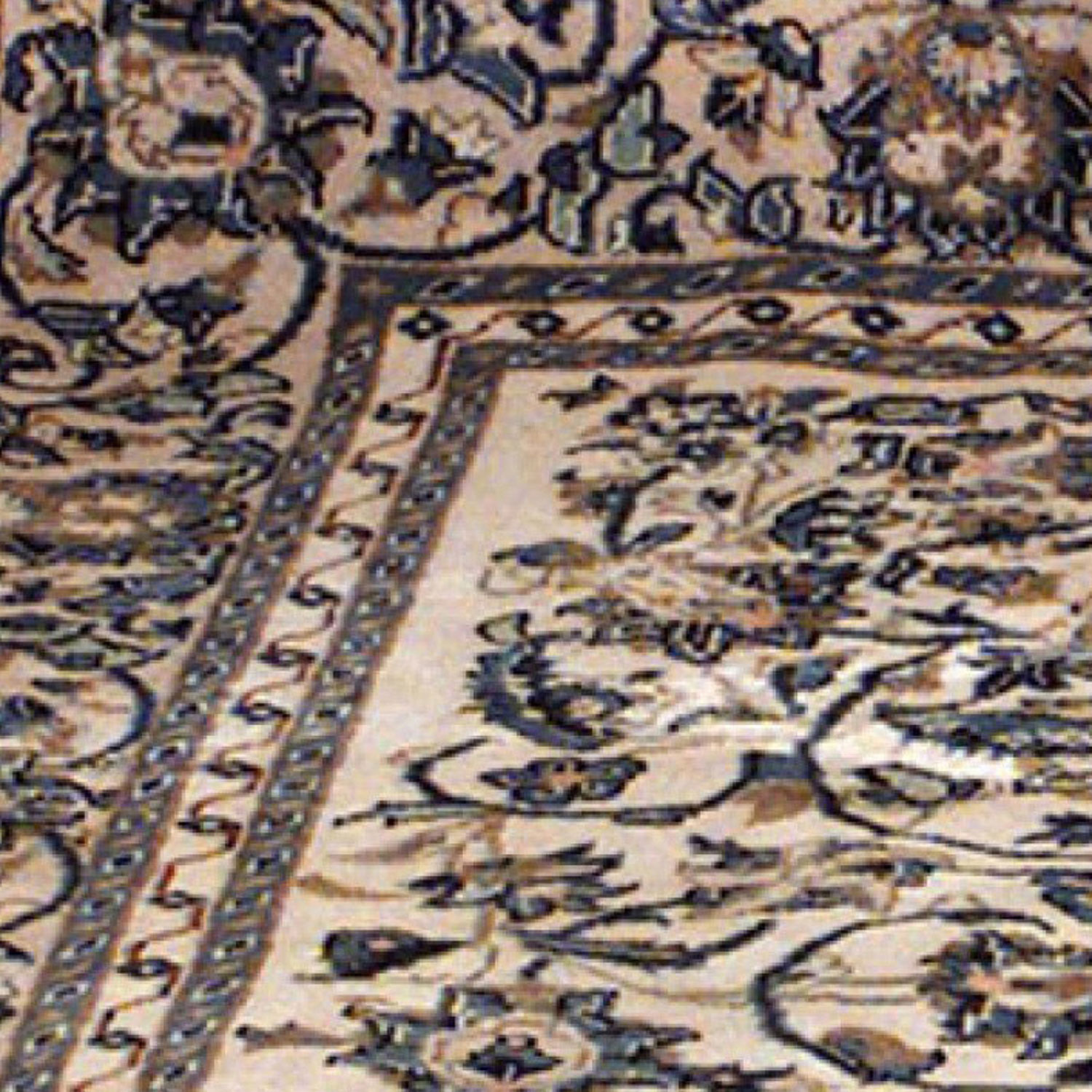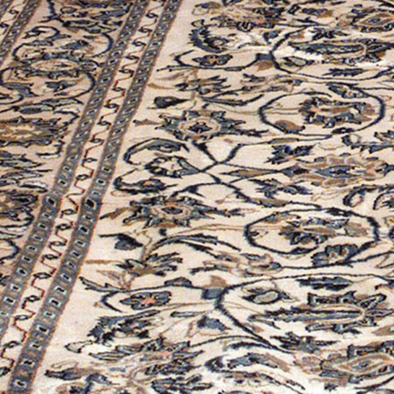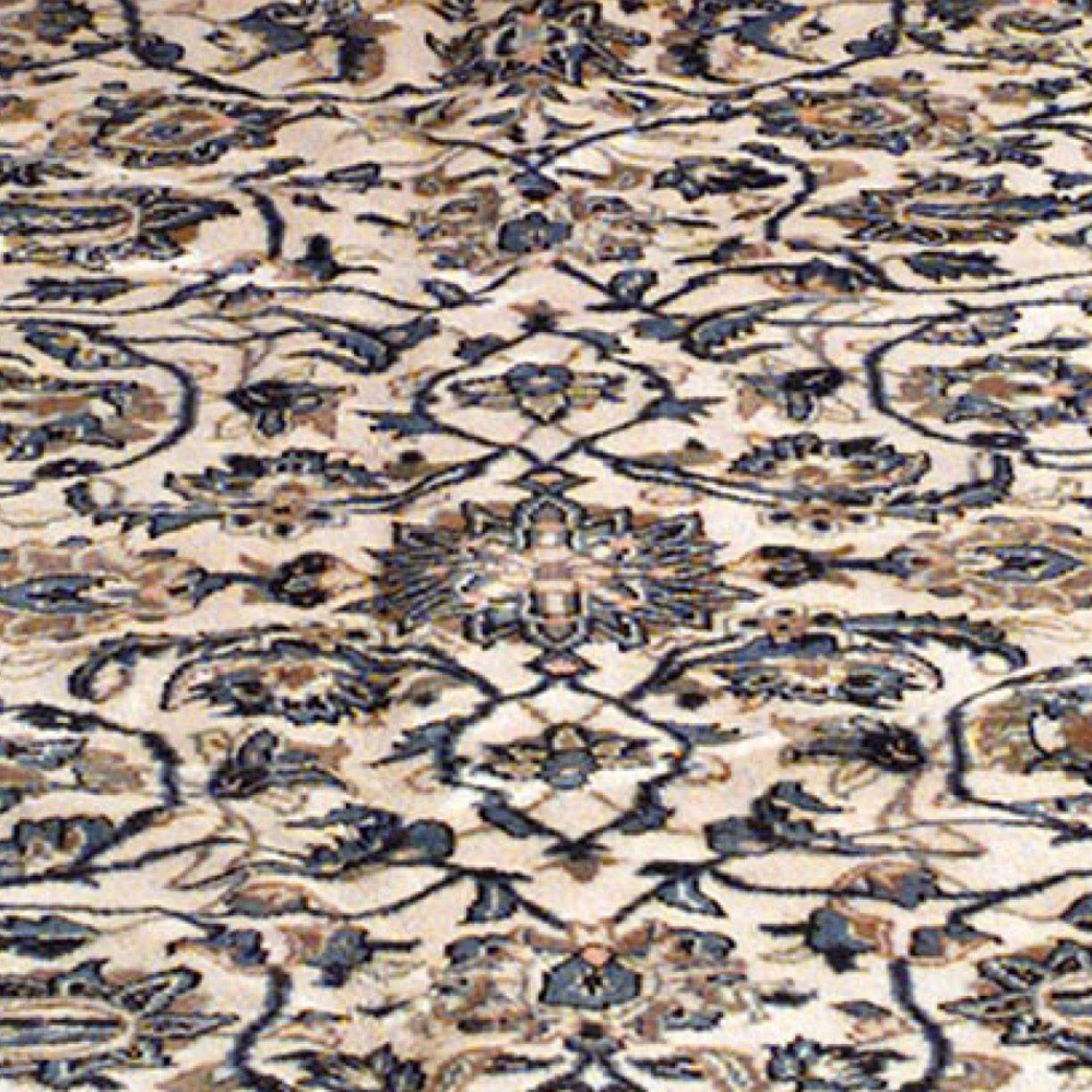 Middle Eastern Persian style (20th Century) Kashan rug carpet with blue floral design on beige background with border (6.5' x 10').