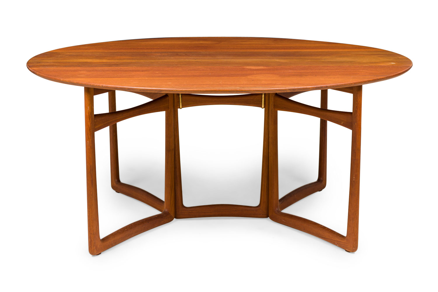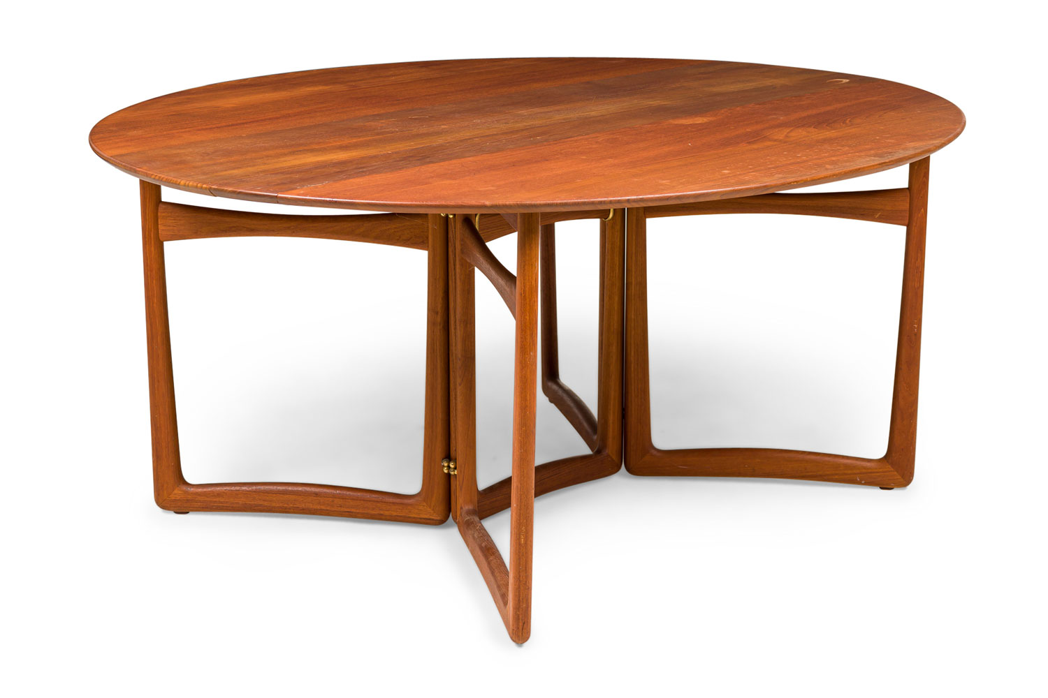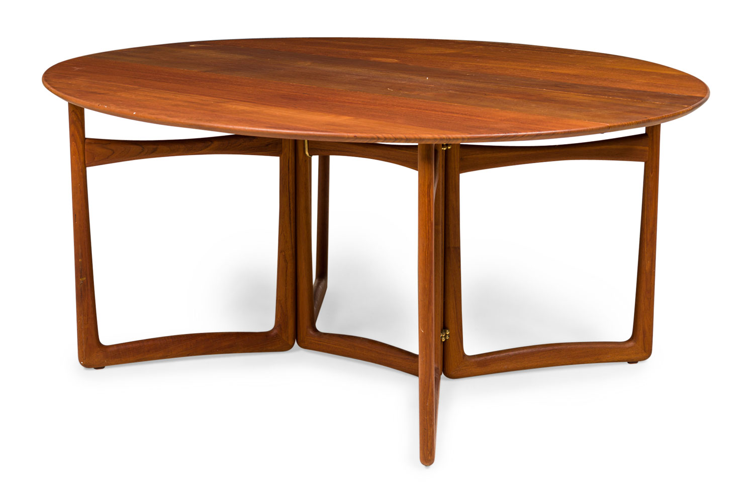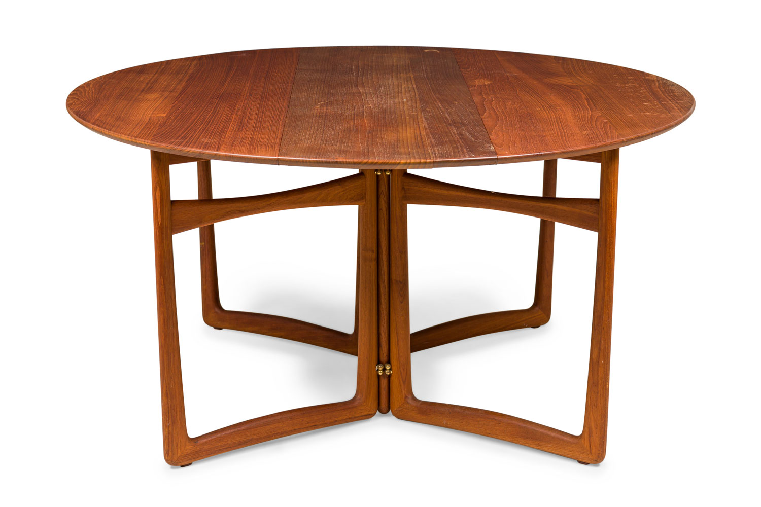 Style: Mid-Century Materials & Techniques: Wood Category: Tables, Office/Library, Dining Room Condition: Splitting slightly along grain Dimensions with leaves open: 58" x 64" Good; Wear consistent with age and use