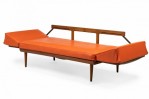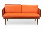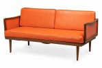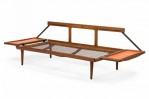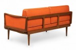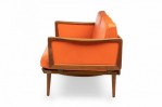 Peter Hvidt Mid-Century Danish Expandable Wood Frame Orange Vinyl Upholstered Sleeper Settee